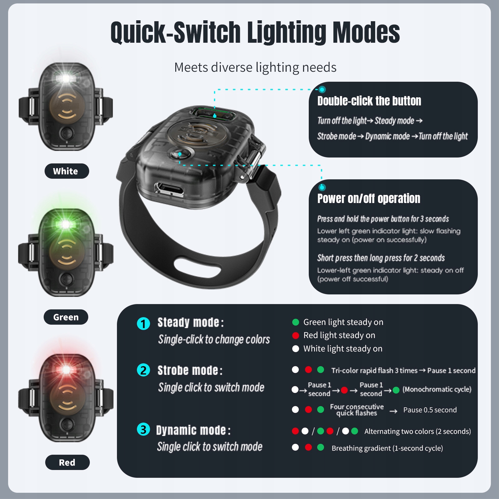 【Удовлетворите своим предпочтениям в освещении】Имеется 3 цвета и множество различных режимов освещения на выбор: одноцветный постоянный свет, одноцветная медленная вспышка (мигает каждые 1000 мс), одноцветная быстрая вспышка (мигает каждые 500 мс), двухцветная петля, трехцветное циклическое дыхание Режимы.