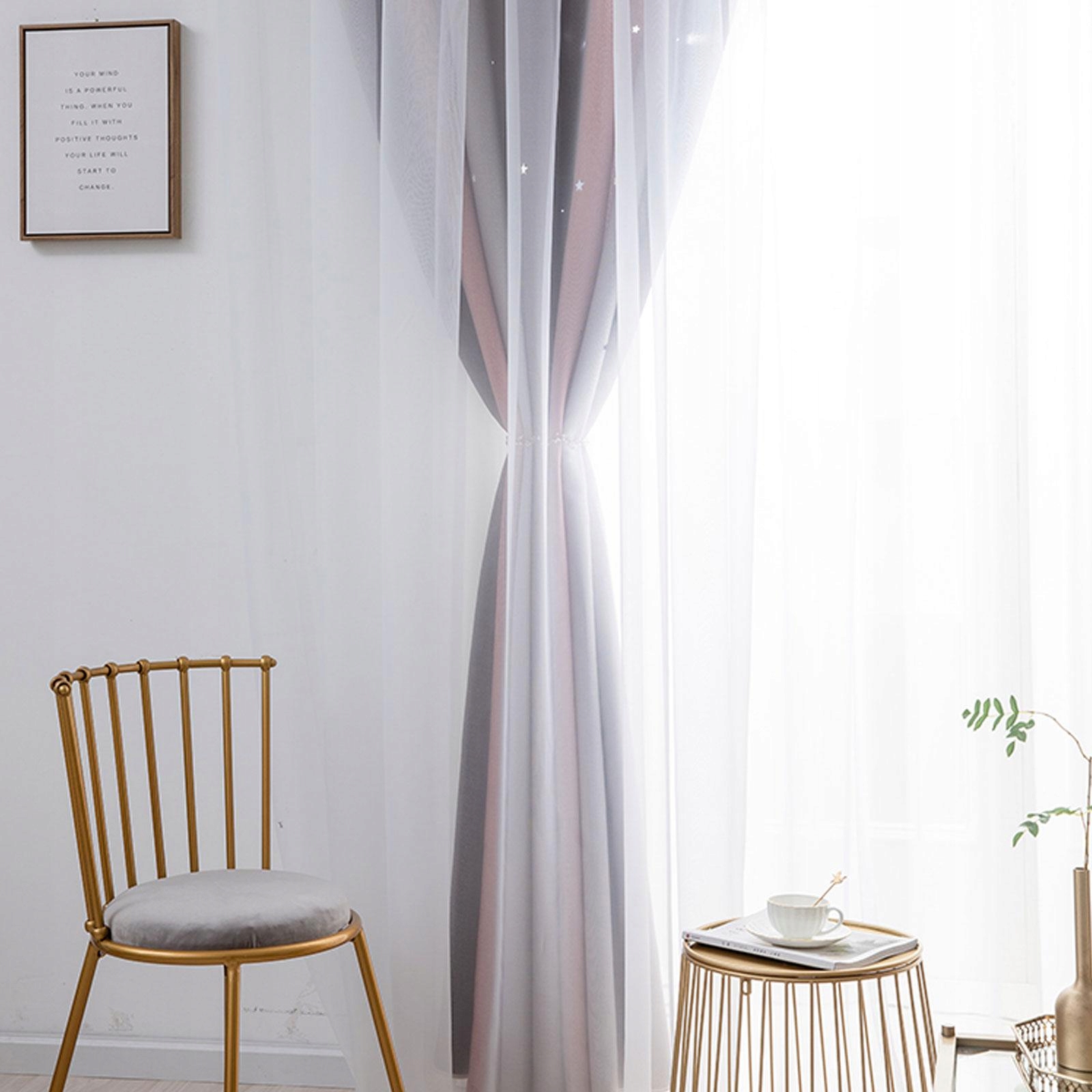 Шторы имеют гладкую, деликатную и естественную драпировку, которая эффективно блокирует летнее тепло и вредные ультрафиолетовые лучи. Дыхающая ткань создает мягкую, туманную проекцию, украшенную узорами звездного света, добавляя немного комфорта и очарования. Эти занавески особенно идеально подходят для девичьей и детской спальни, создавая уютную и мечтательную атмосферу.
