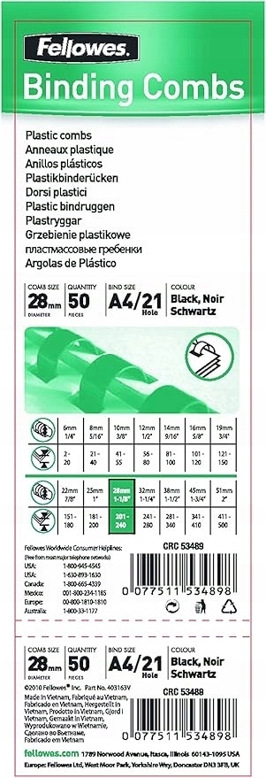 Гребы изготовлены из сильного пластика, что гарантирует сопротивление повреждениям и долгом сроке жизни. Совместим со всеми стандартными пластиковыми связующими 21-кольцом.