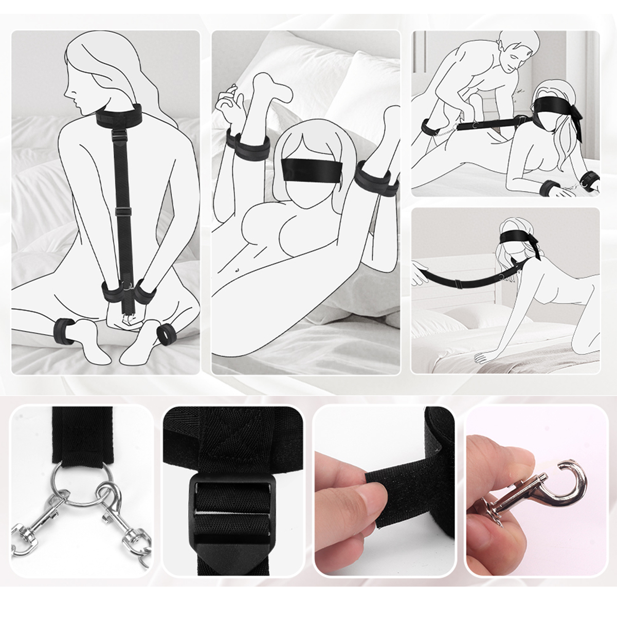 Этот набор для бондажа включает в себя в общей сложности 4 аксессуара (1 ошейник, 2 наручника, 2 наручника на щиколотках и 1 повязку для глаз). Независимо от того, являетесь ли вы новичком или опытным энтузиастом БДСМ, этот набор для бондажа для взрослых удовлетворит ваши разнообразные потребности и доставит больше удовольствия в различных стилях игры.