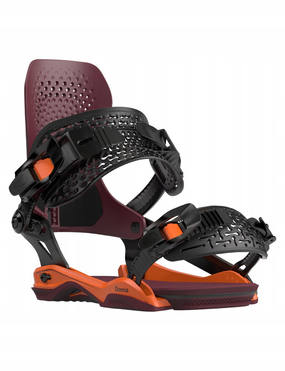 donna была оснащена нейлоновым гигбэком -типом квотербека, который обеспечивает отличную поддержку и быструю реакцию - его интерьер покрыт клейким резиновым слоем, который защищает заднюю часть обуви сноуборда и сохраняет их в правильном положении во время вождения. Квотербек намного ниже, чем другие максимальные меры в коллекции привязки Баталеона, что снижает вес связей и обеспечивает большую свободу в соответствии с фристайной природой связывания.