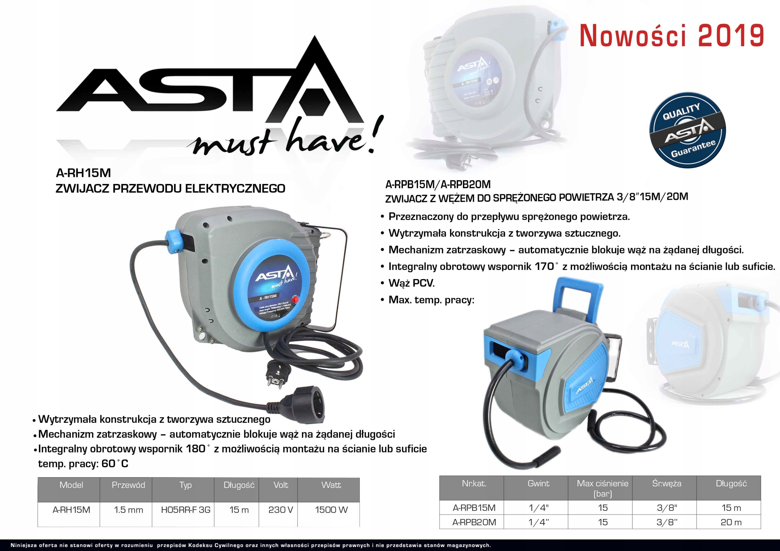 Просматривая «ZWIJACZ Z WĘŻEM DO POWIETRZA 15 M ASTA A-RPB15M», вы можете быть уверены, что данный товар из каталога «Пневматические шланги» будет доставлен из Польши и проверен на целостность. В цене товара, указанной на сайте, учтена доставка из Польши. Внимание!!! Товары для Евросоюза, согласно законодательству стран Евросоюза, могут отличаться упаковкой или наполнением.