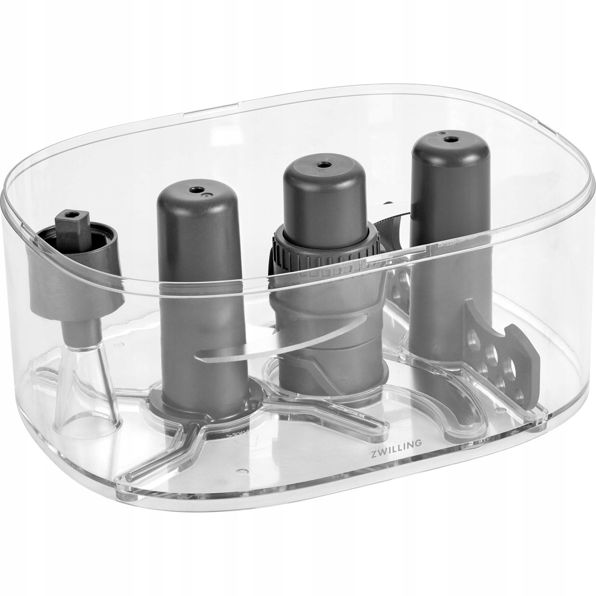 Все, что требует много времени, энергия -требует и утомительный, многофункциональный преобразователь пищи Zwilling Enfinigy, сделает для вас, нажав одну кнопку. И если вам это не нужно в данный момент, вы можете комфортно хранить его, сохранив пространство для оставшегося оборудования: набор был дополнен двумя отдельными контейнерами для хранения оборудования.
