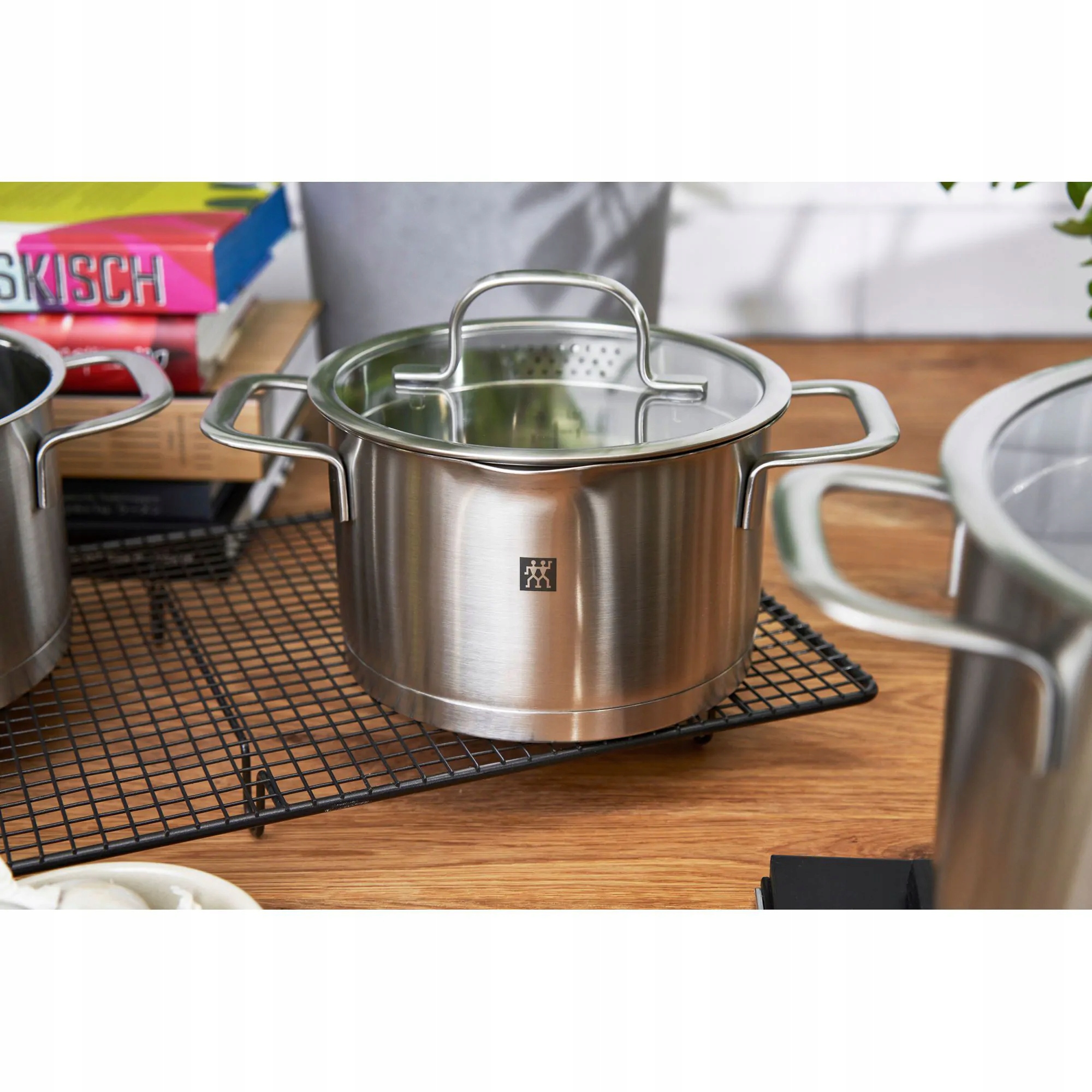 Набор кастрюль из 4 предметов серии ZWILLING TrueFlow сочетает в себе качество и функциональность. Качественная нержавеющая сталь 18/10 гигиенична и безвкусна. Многослойное дно Sigma Classic+ отлично распределяет тепло, а крышка имеет практичные отверстия для слива воды. Попрощайтесь с дополнительным ситом!