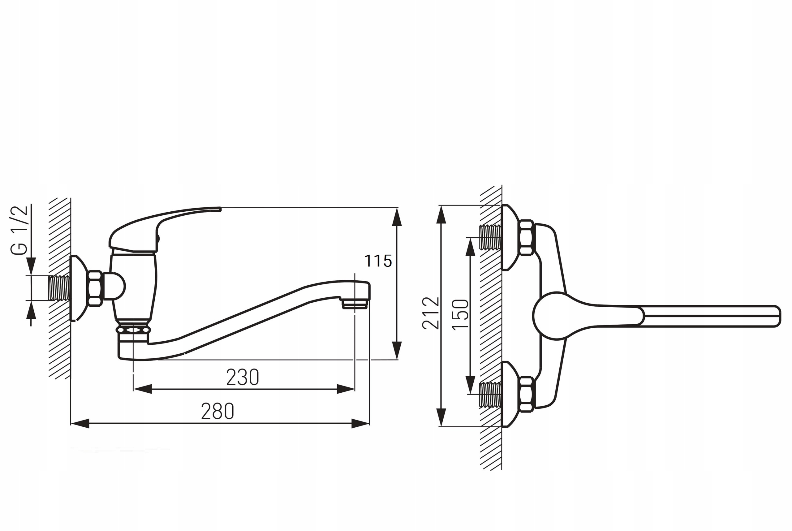 - Присоединение: эксцентричное G1/2, расстояние 150 ± 20 мм