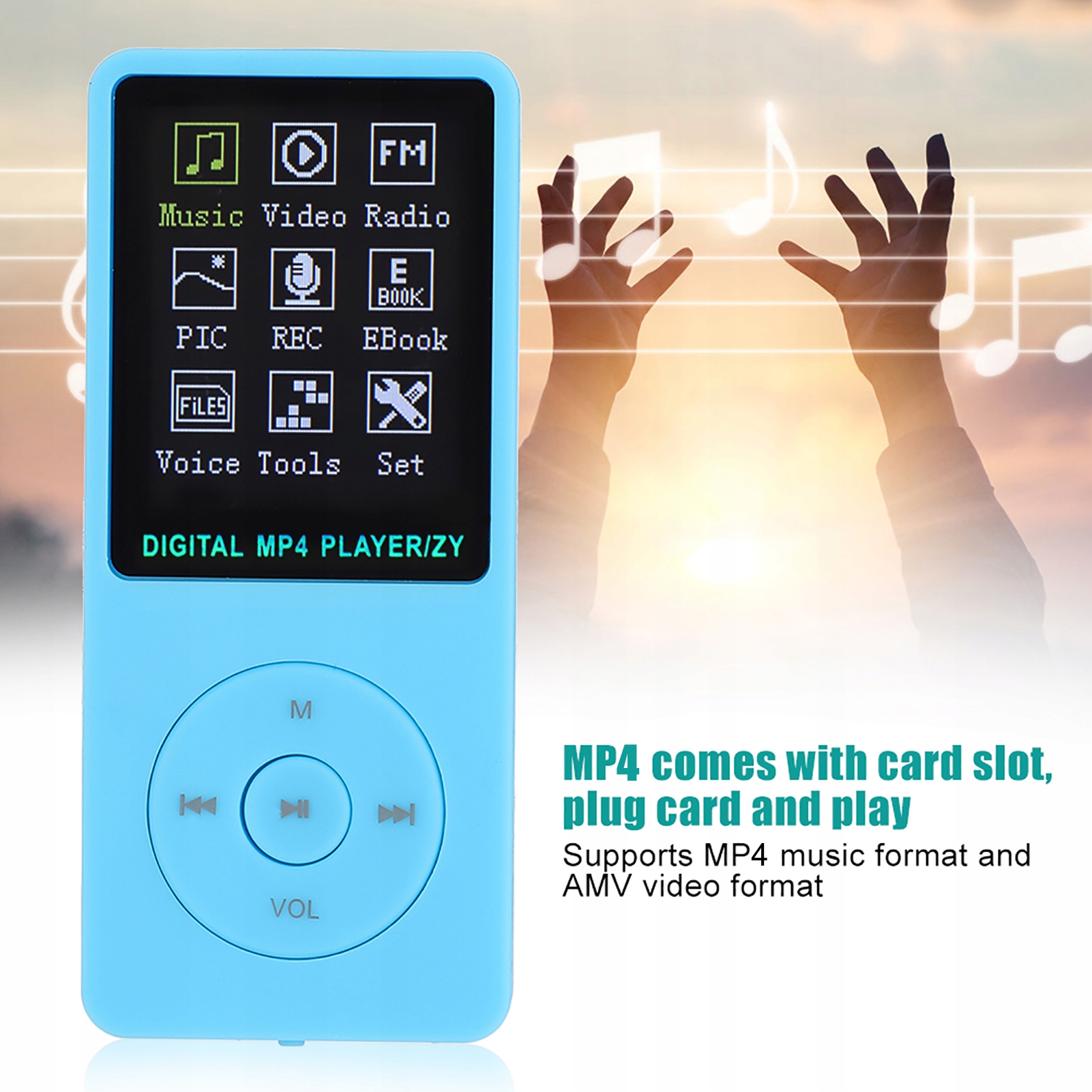 4. MP4 оснащен карсовым сокетом, картой и воспроизведением, он сочетает в формате музыки MP3 и видео-формат AMV