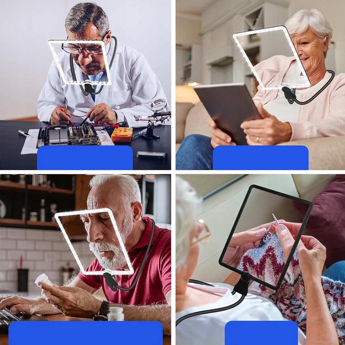 ⏩【 Идеальный подарок для пожилых людей】 Эластичная шея позволяет вам освободить руки. Вы можете установить объектив под любым углом, не беспокоясь о его стабильности. Это увеличение чтения идеально подходит для подарка для людей со слабыми или визуальными нарушениями. Они могут читать, вышивать, шить, ремонтировать, возиться и выполнять другие занятия, не смотря вниз, идеально подходит для долгосрочного использования.