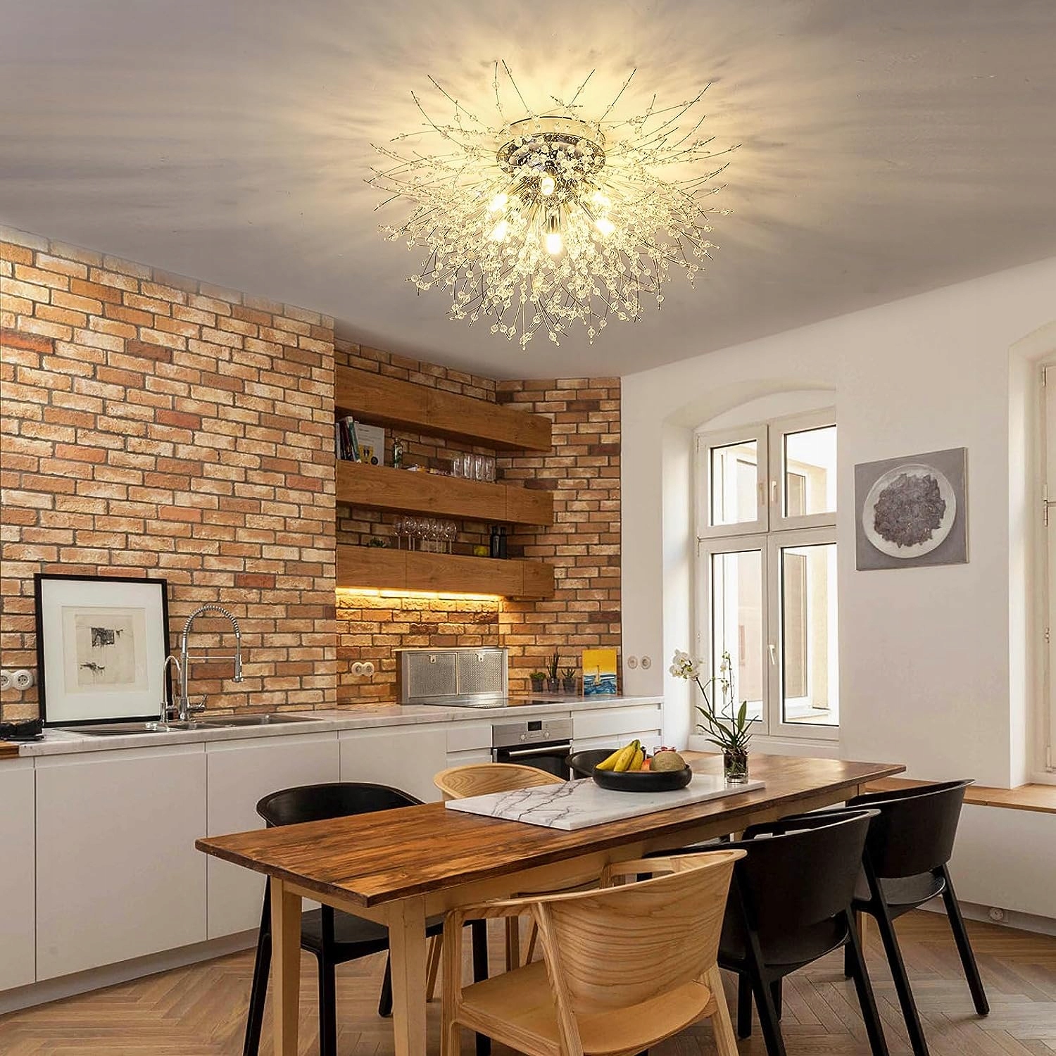 Современные потолочные светильники отличаются своим внешним видом. Он имеет кристаллическую и хромированную отделку и полупрозрачную текстуру. Корпус лампы более модный и красивый. Он ослепляет под преломлением света. Издалека это похоже на фейерверк, расцветающий в центре внимания. огонь. Это красиво и ослепительно. Подходит для вашего дома для создания освещения. Атмосфера.