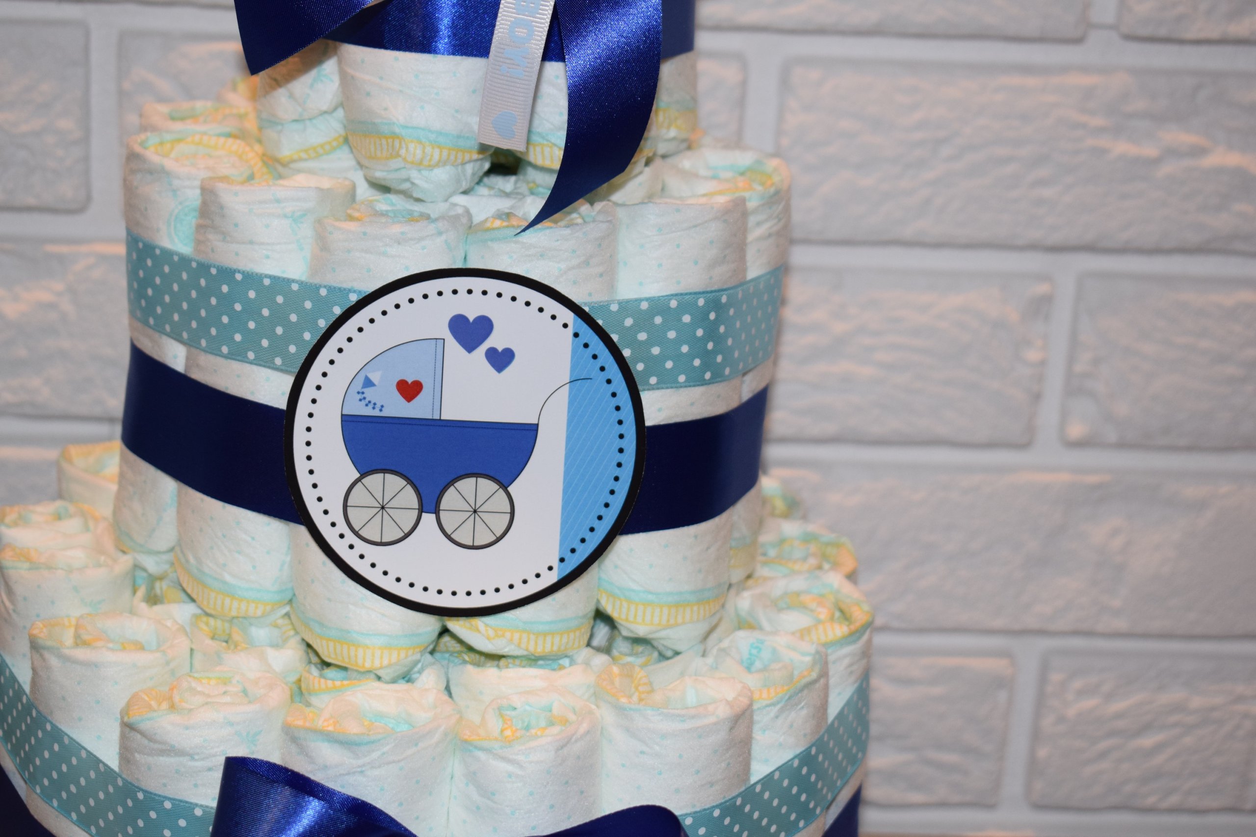 Гарний триярусний торт ручної роботи з оригінальних підгузників Pampers - це унікальний і практичний подарунок, якому буде радий кожен малюк і кожен батько.