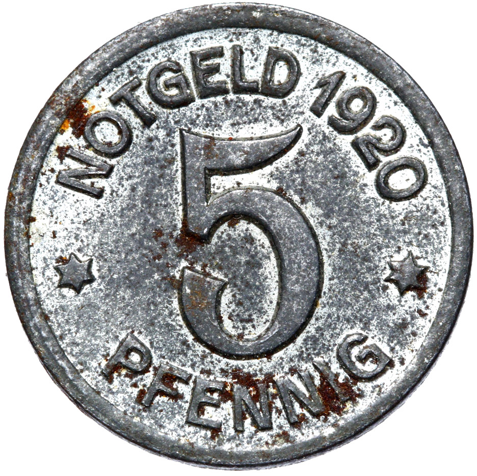 + Löwenberg - Lwówek Śląski - NOTGELD - 5 Pfennig 1920 праска - СТАН!
