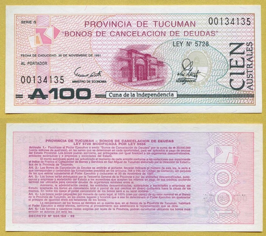 -- АРГЕНТИНА 100 AUSTRALES TUCUMAN 1991 PS2715 UNC