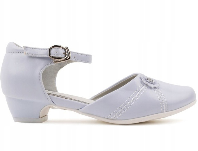 Класичні тапочки на низькому стійкому каблуці та декорованому носку. Виготовлений з екологічної шкіри найвищої якості з водонепроникною вставкою. Легко одягається завдяки ремінцю з пряжкою. Відтінок взуття злегка блакитний. Чудова модель, ідеальна для чудових випадків. Взуття від відомого виробника.