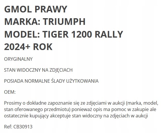 Просматривая «, КРЫШКА МОНТАЖНАЯ GMOL P TRIUMPH TIGER 1200 RALLY 24+», вы можете быть уверены, что данный товар из каталога «Крепления и крепления» будет доставлен из Польши и проверен на целостность. В цене товара, указанной на сайте, учтена доставка из Польши. Внимание!!! Товары для Евросоюза, согласно законодательству стран Евросоюза, могут отличаться упаковкой или наполнением.