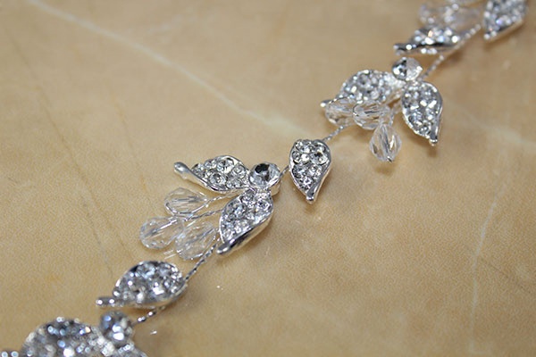 Діадема - прикраса для підколювання. Гілочки з листям, усіяні меншими кристалами цирконів, і невеликі скупчення з трьома витягнутими кристалами прикріплені до крученого металевого дроту.