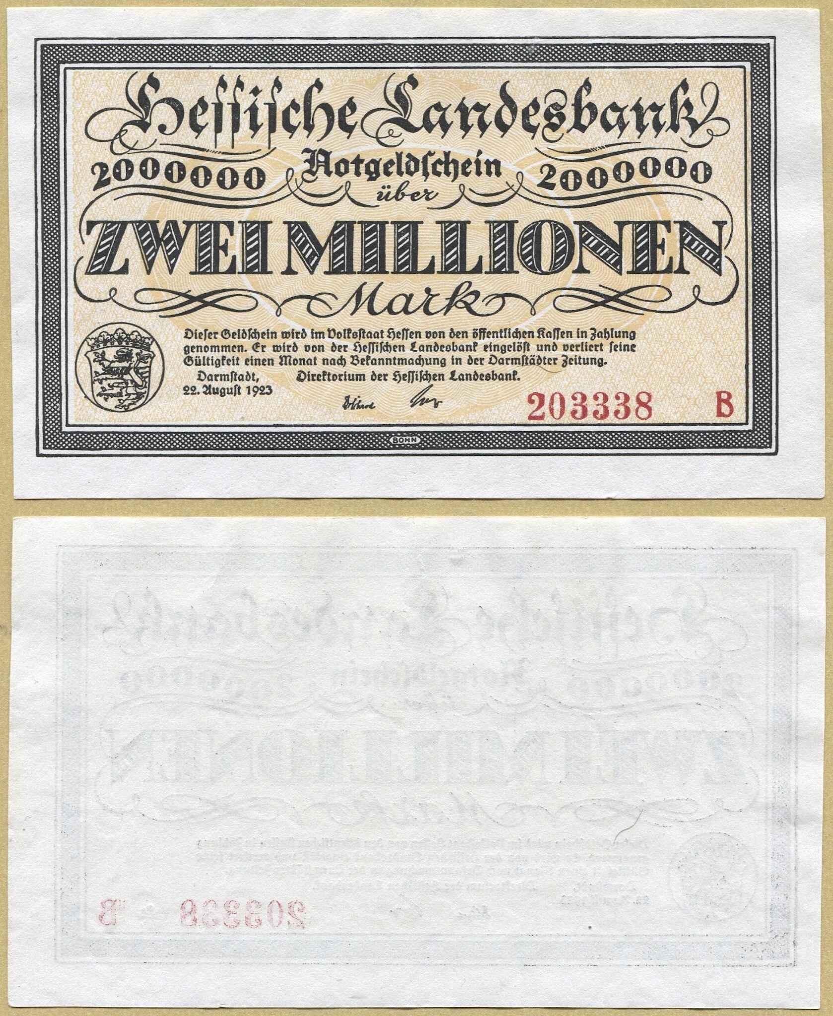 - НІМЕЧЧИНА ГЕССЕН ДАРМШТАДТ 2 МІЛЬЙОНИ МАРОК 1923 B