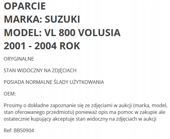 Оплачивая «, СПИНКА, РАМА, КРЕПЛЕНИЕ SUZUKI VL 800 VOLUSIA 01-04», вы можете быть уверены, что данное изделие из каталога «Крепления и крепления» будет доставлено из Польши и проверено на целостность. В цене товара, указанной на сайте, учтена доставка из Польши. Внимание!!! Товары для Евросоюза, согласно законодательству стран Евросоюза, могут отличаться упаковкой или наполнением.