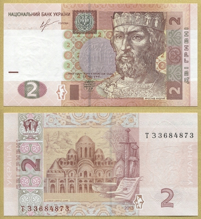 - УКРАЇНА 2 гривні 2013 TZ P117d UNC