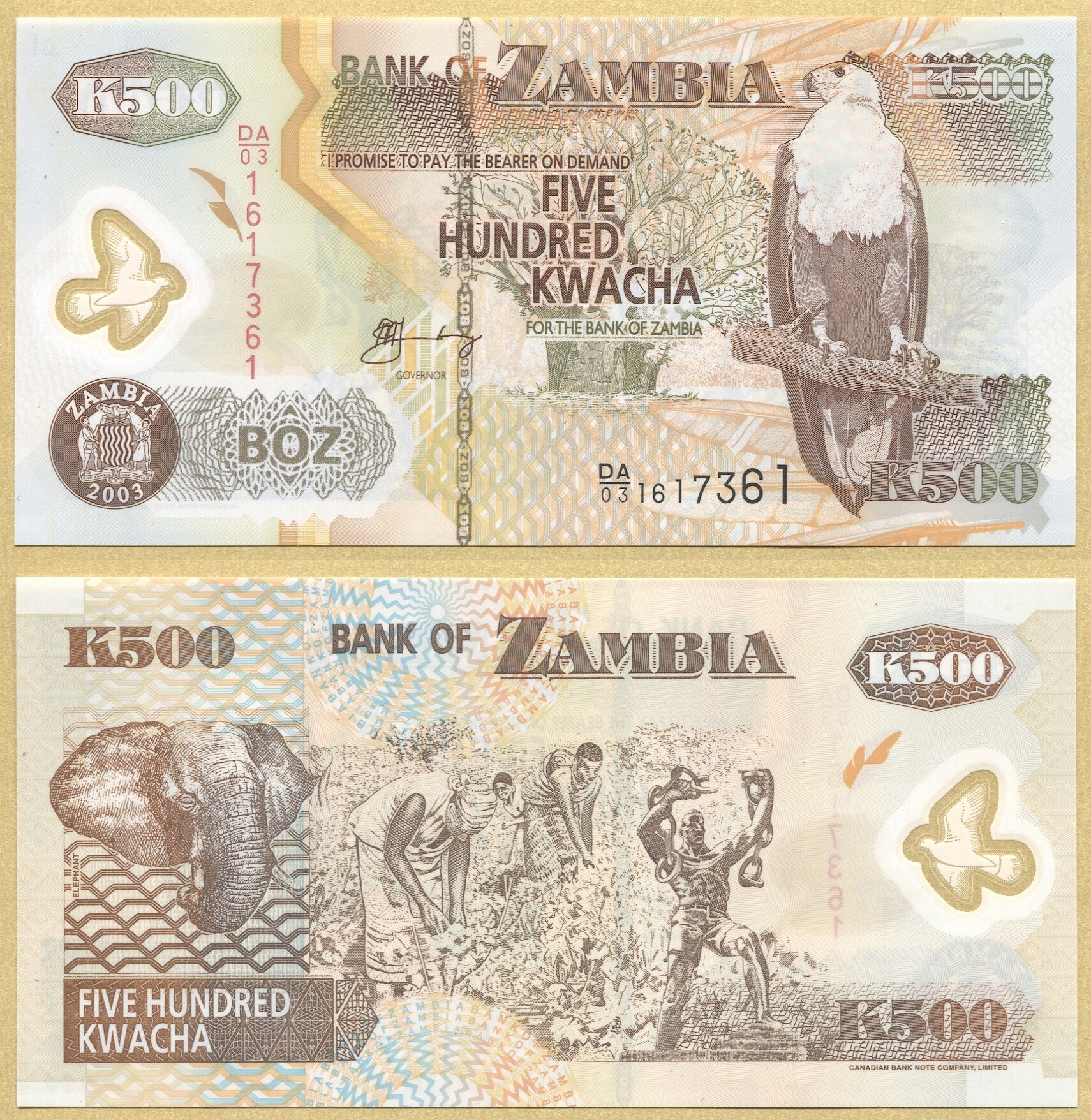- ЗАМБІЯ 500 KWACHA 2003 DA / 03 P43a UNC полімер