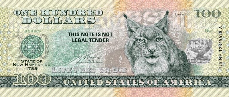 сувенірна банкнота з серії "Північноамериканські штати" присвячена Нью -Гемпширу.
