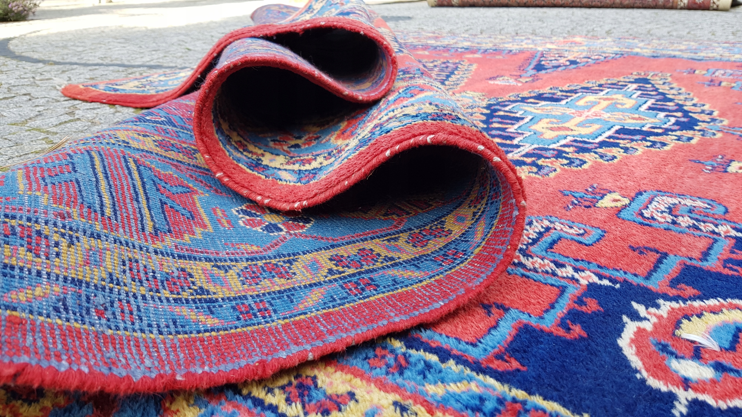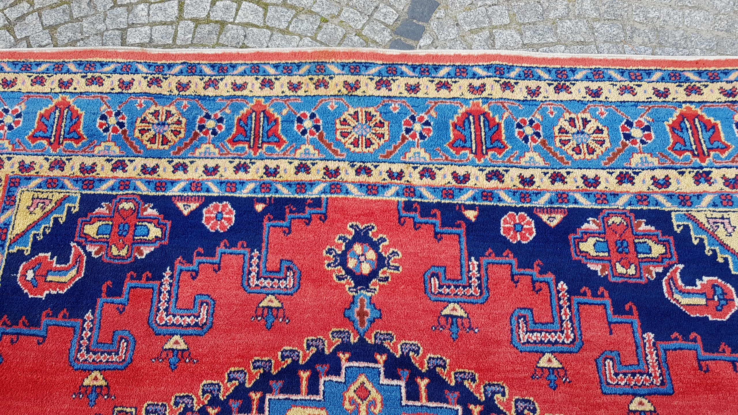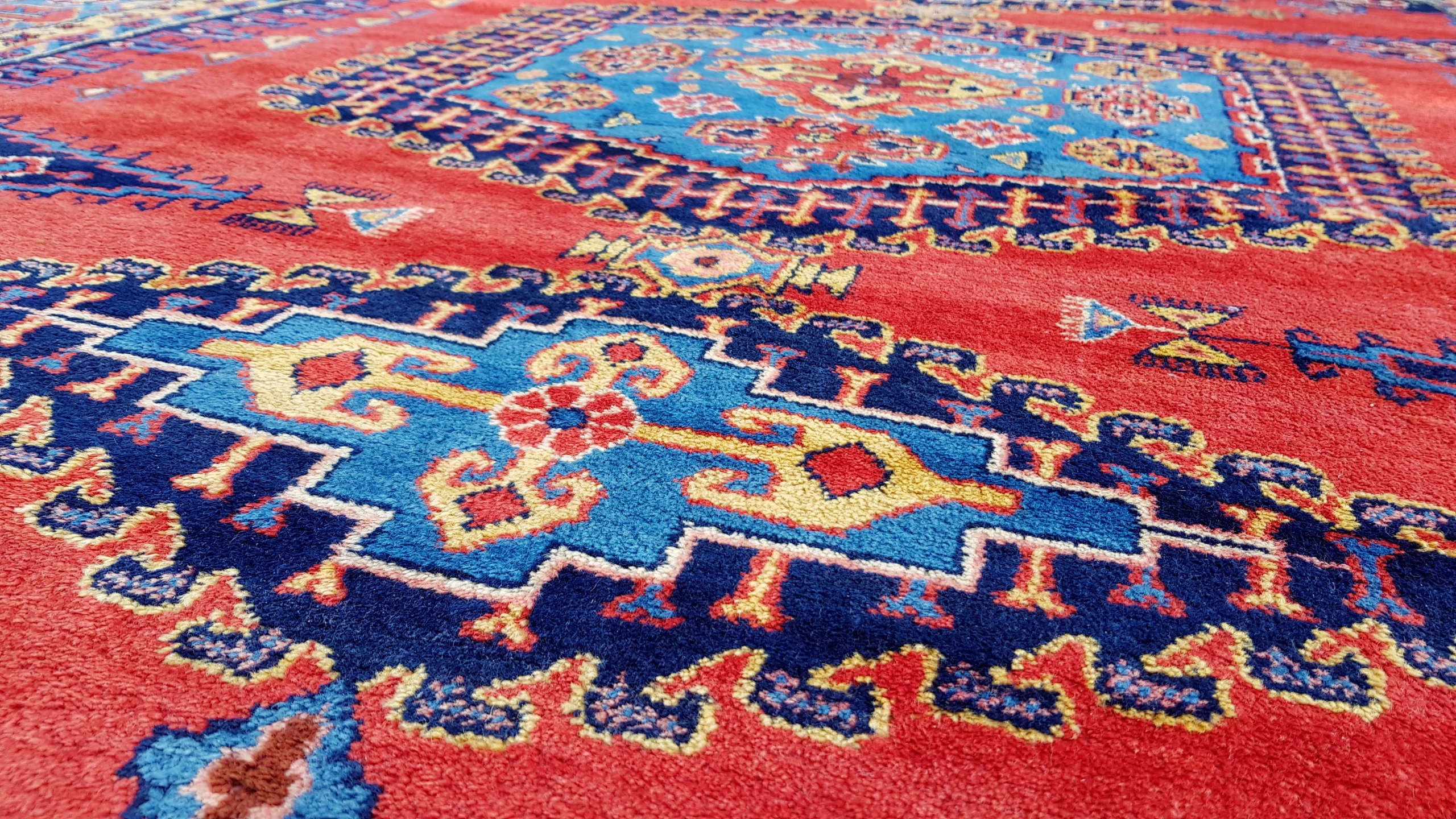 Високі килими поблизу місто Хамадан, яке розташоване на північному заході Ірану, в 300 км на захід від Тегерана. Це одне з найдавніших міст світу, яке згадується в Біблії під назвою Екбатана. У центрі міста знаходиться закупівля та склад килимів, витканих у кількох сотнях прилеглих міст. Багато килимів мають власну назву на ринку, наприклад: Nahavand, Tuiserkan, Malayer, Hosseinabad, Burchalow, Endzilas, Lilian, Khamse και Zanjan. Найпростіші килими, виткані в цьому районі, продаються під назвою Хамадан. Кожне місто виробило свій характер у ткацтві килимів, вони також мають різні візерунки та кольори. Більшість килимів Hamadan виготовляються з якісної вовни, пофарбованої в різні кольори. Фарби натуральні з переважанням відтінків синього індиго та червоного.