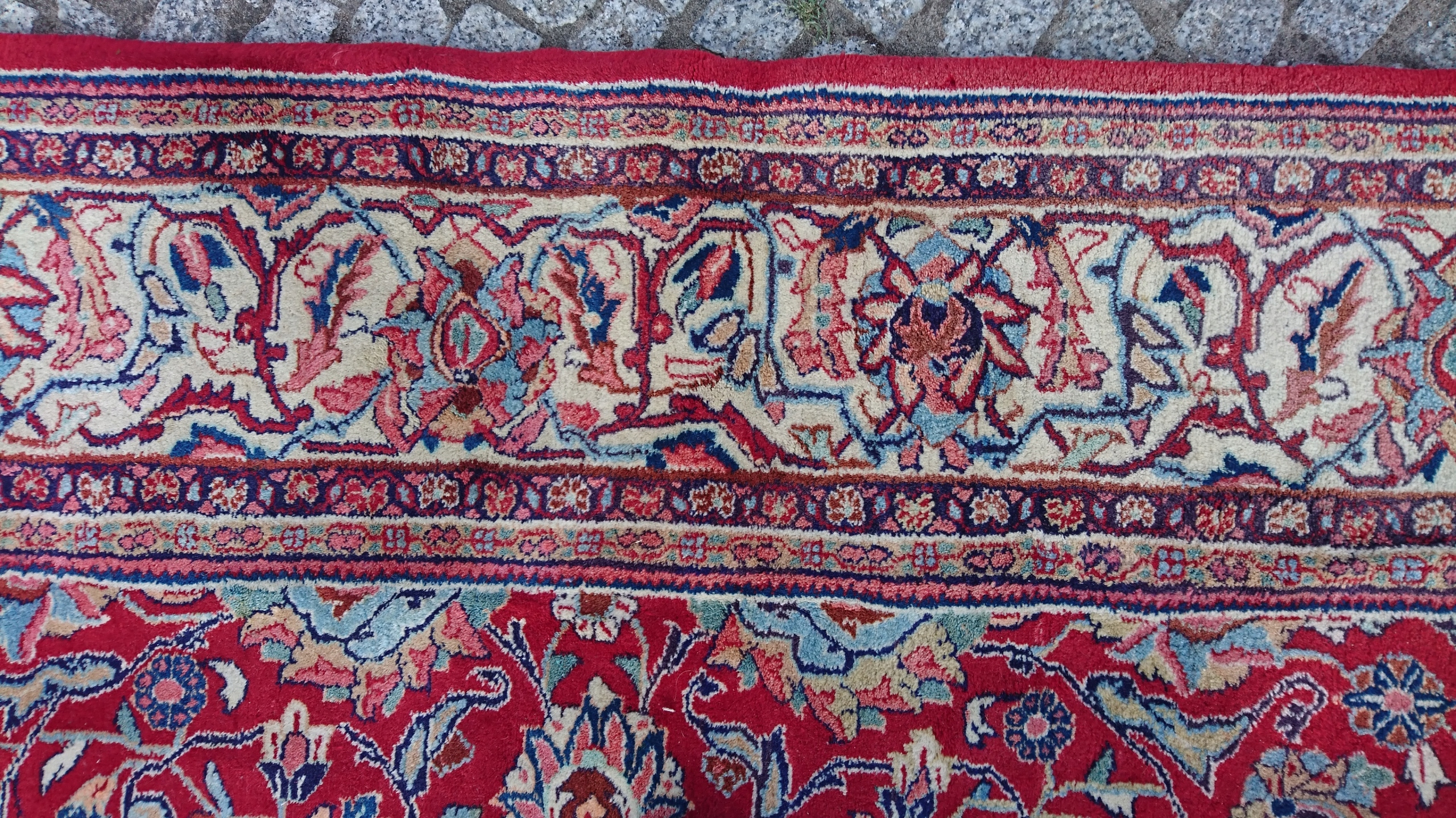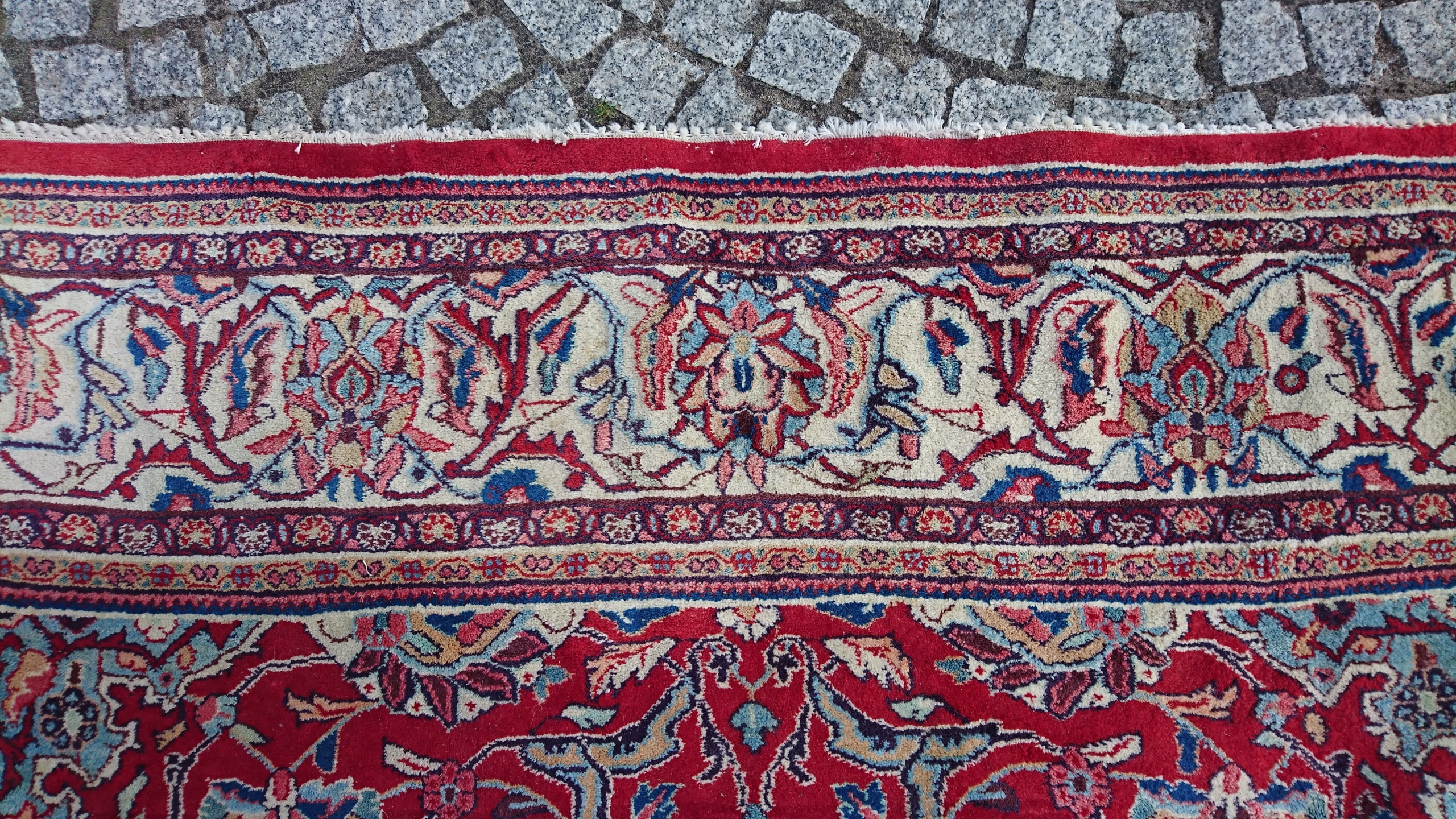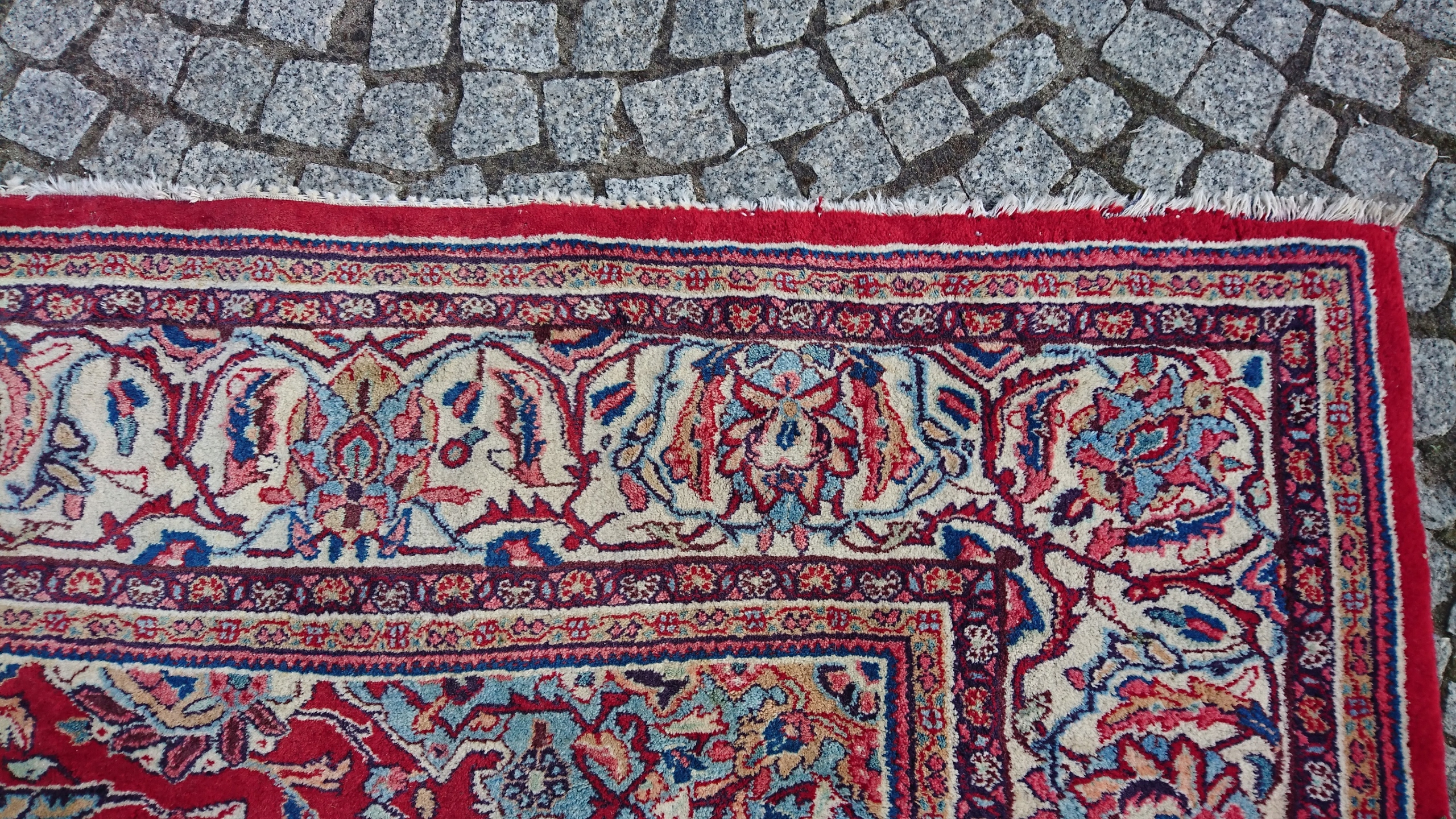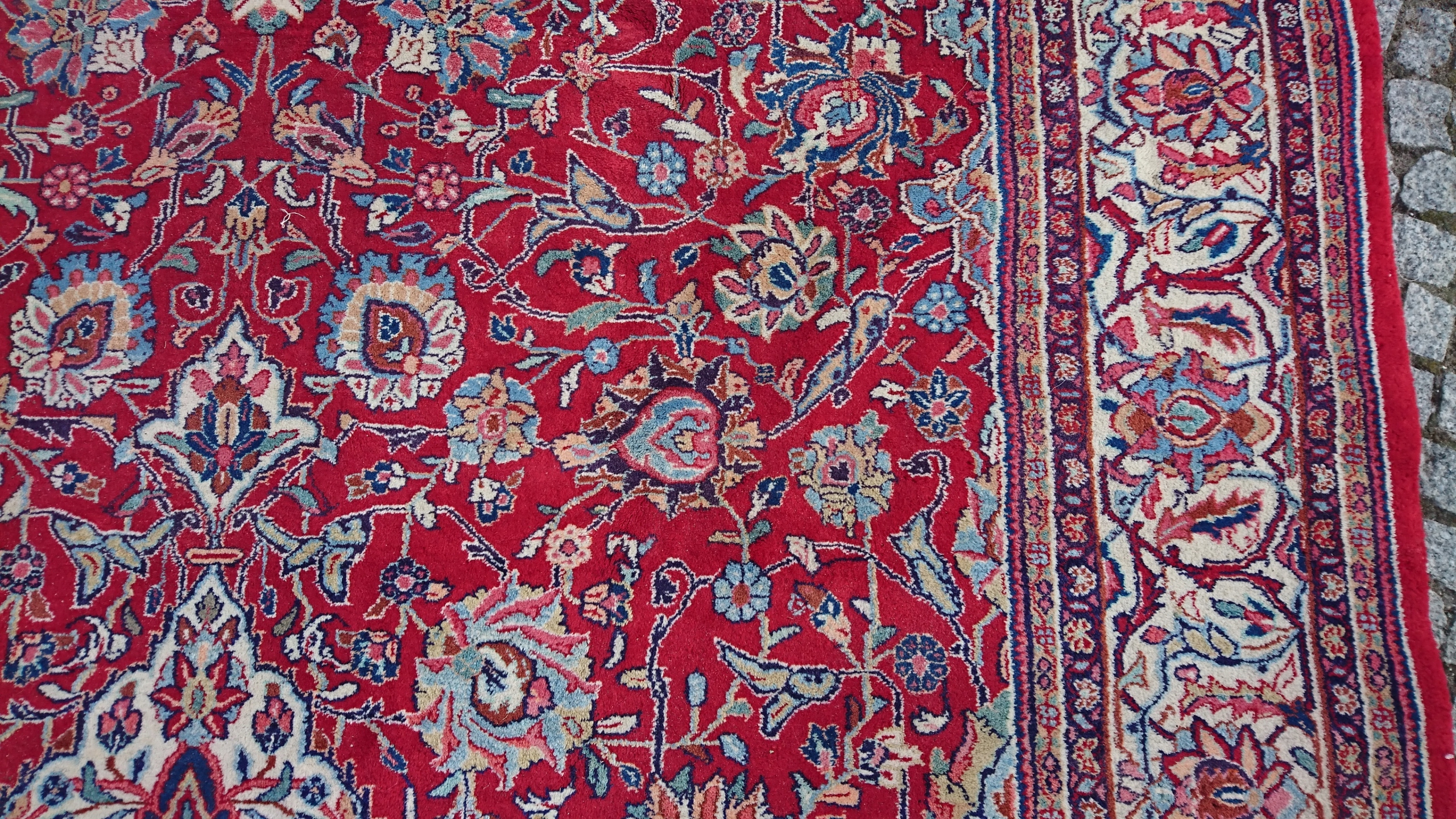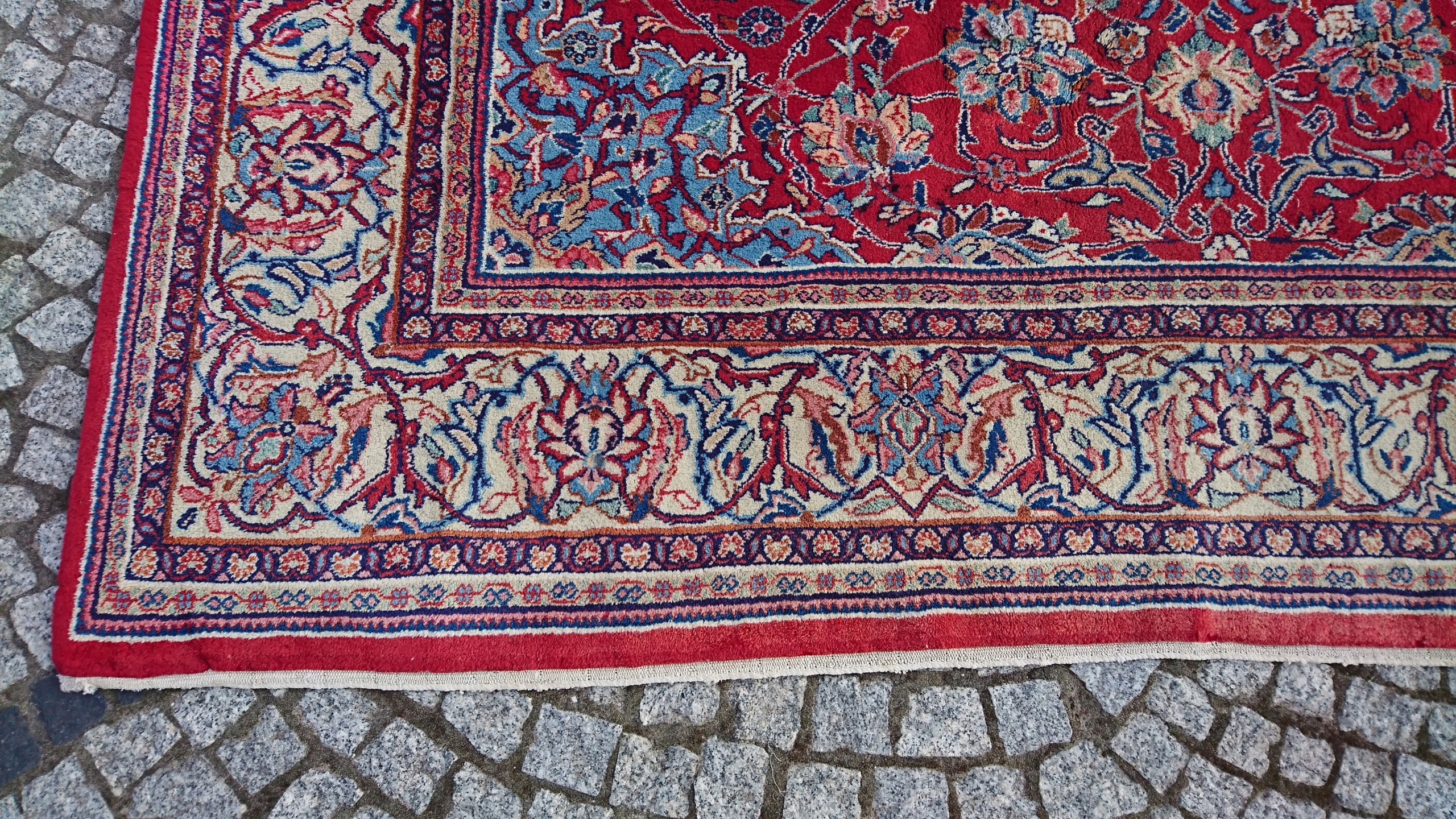 Перський килим саруг. Виткана вручну з вовни найвищої якості. Характеризується компактним, приємним на дотик, блискучим флісом і красивими кольорами та візерунками. Він у дуже хорошому стані.