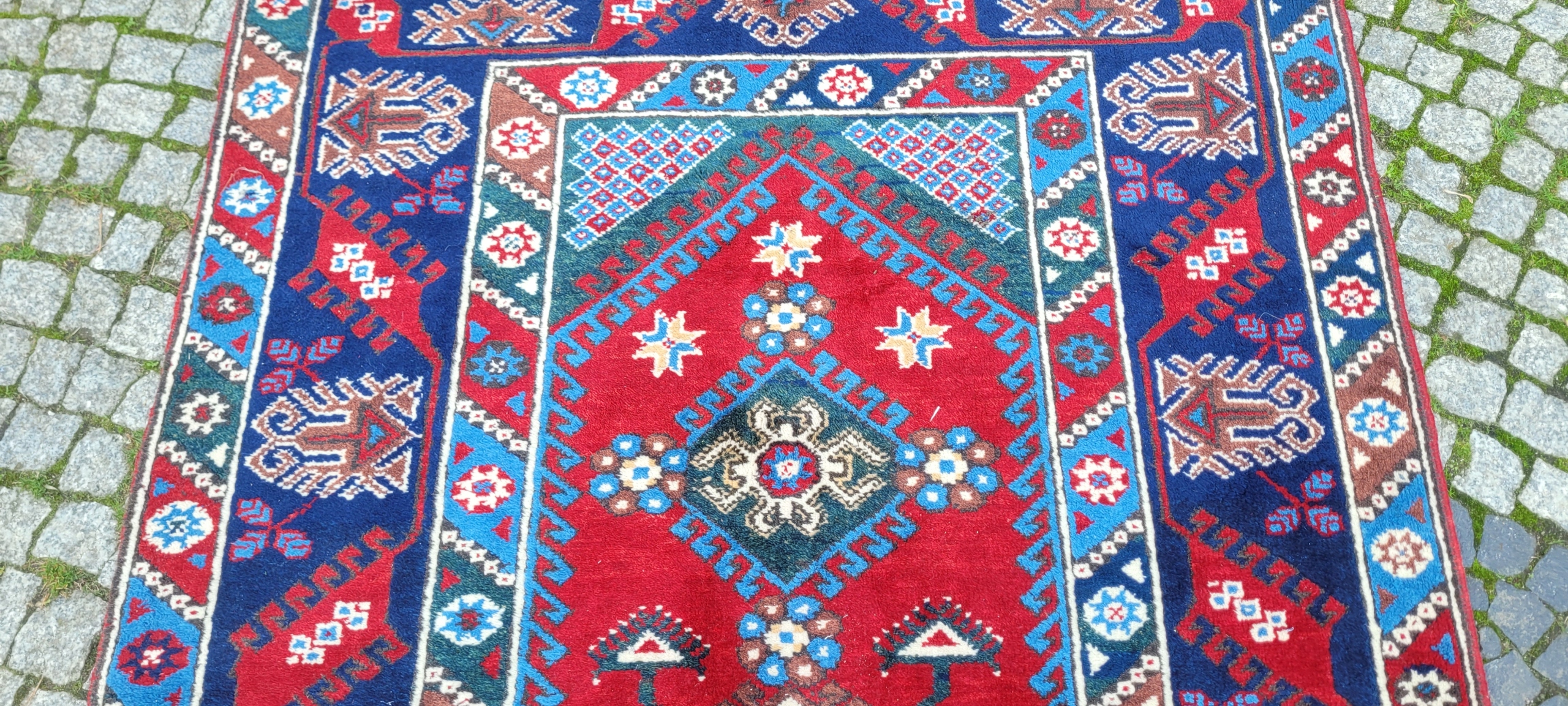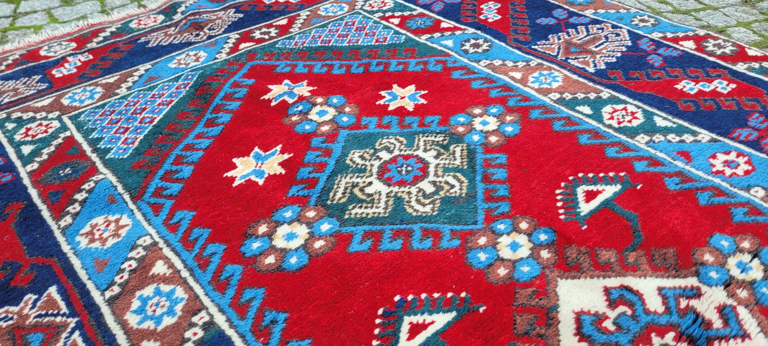 Туніський килим. Ручне плетіння з вовни. Характеризується компактним, приємним на дотик, м'яким флісом і красивими кольорами та візерунками. Він у дуже хорошому стані, мінус видно на фотографіях.