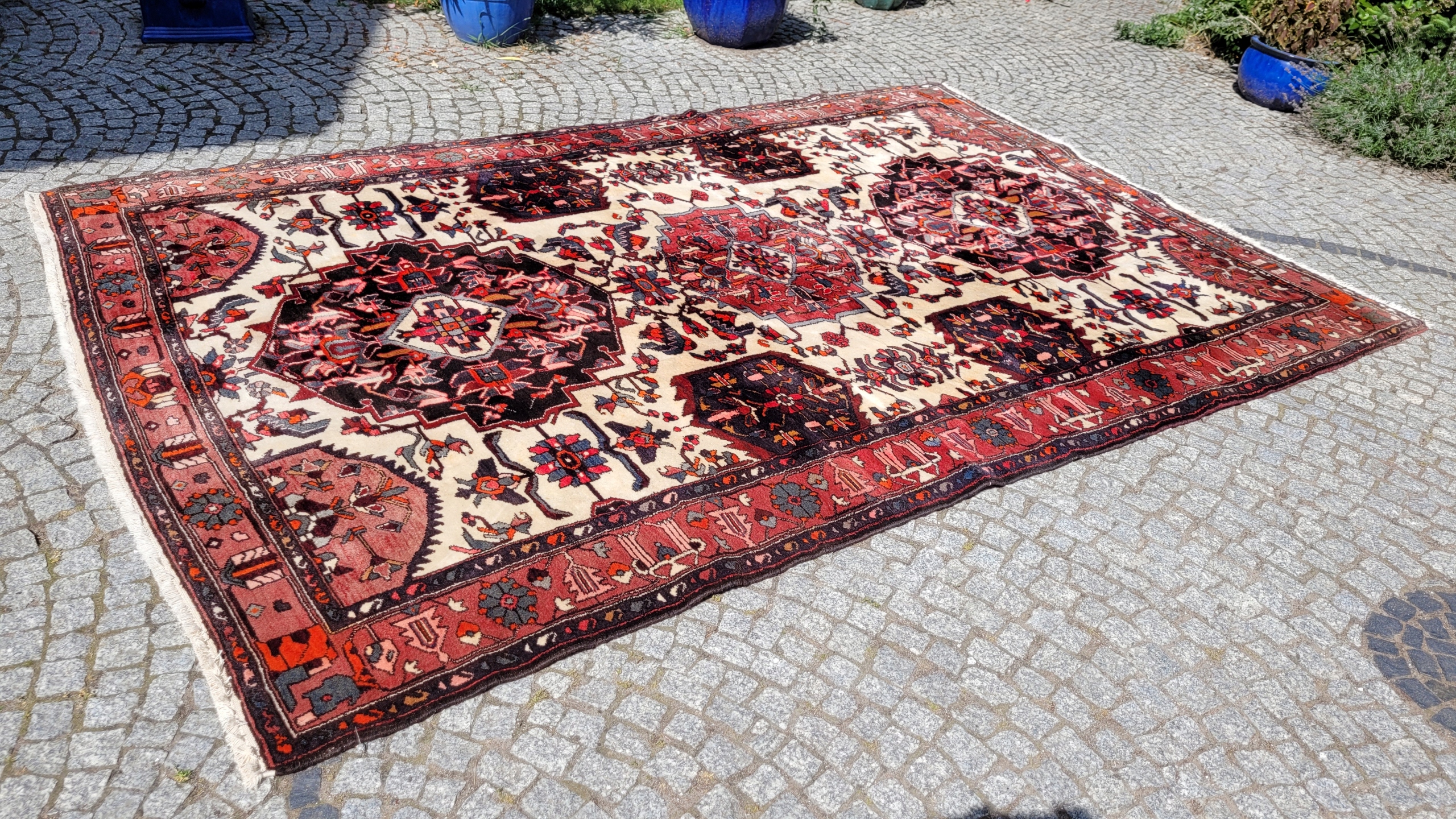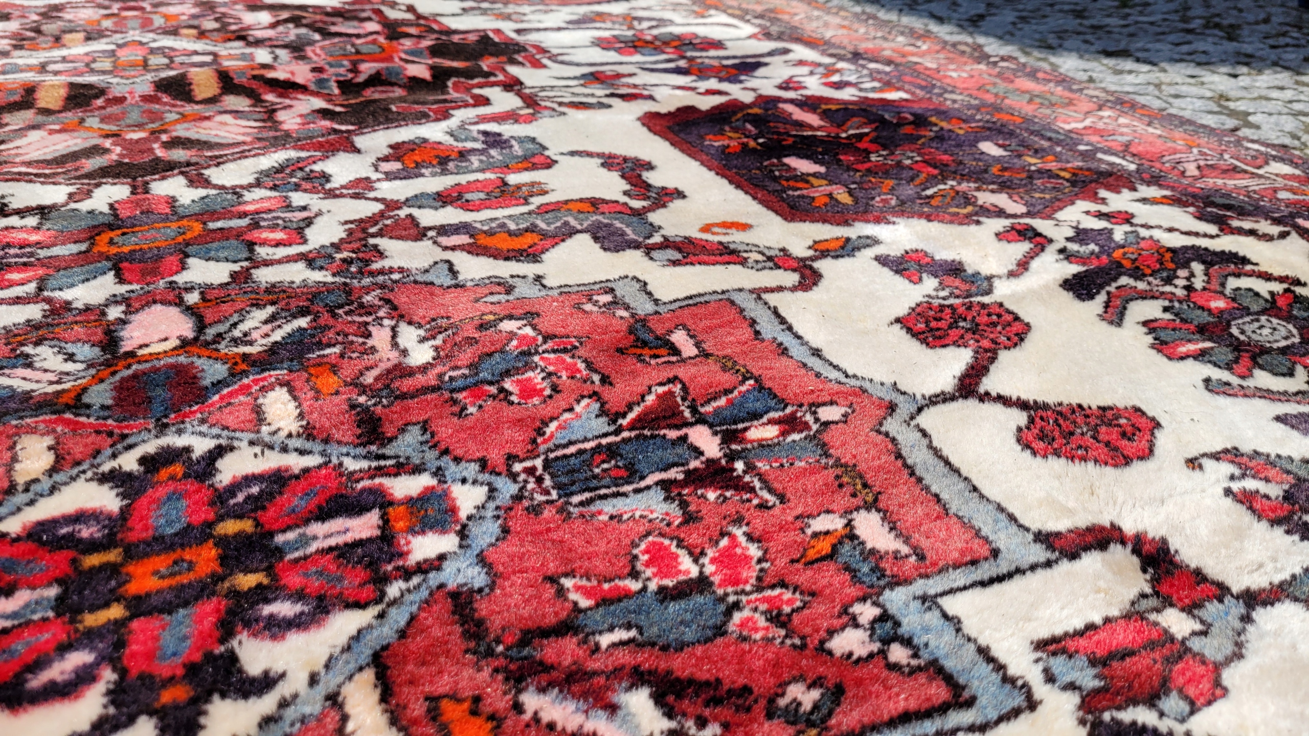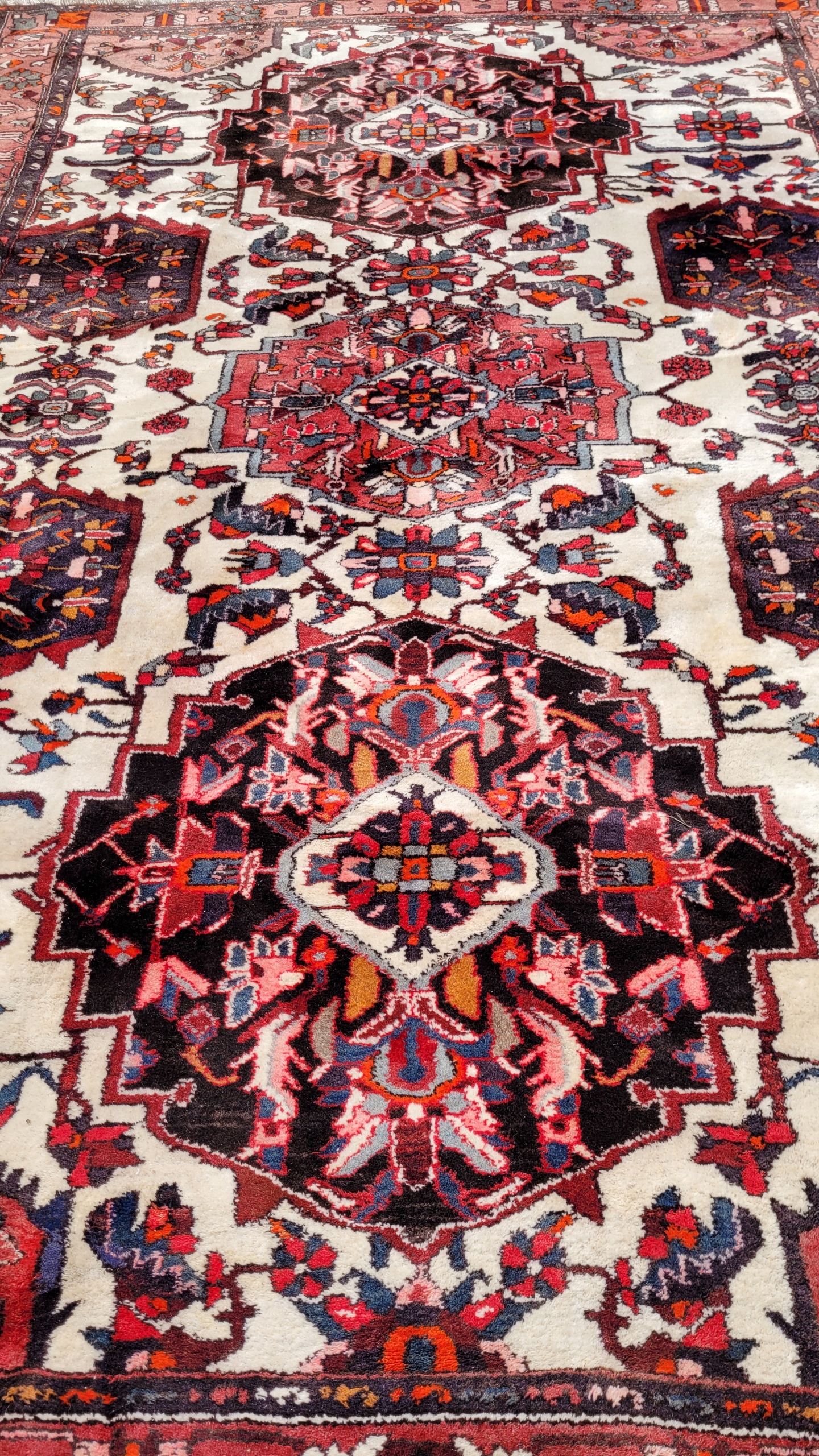 Перський килим Бактяр. Виткана вручну з вовни найвищої якості. Характеризується компактним, приємним на дотик флісом і красивими кольорами та візерунками. Він у дуже хорошому стані, мінус видно на фотографіях.