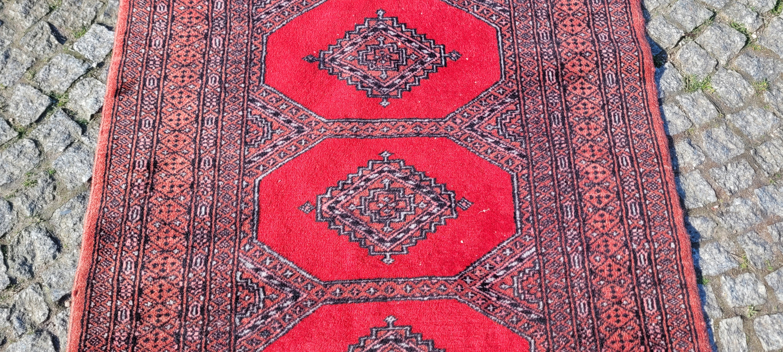 східна, підписана килимка Бучара. Сплетений вручну від найвищої якості відшліфованої вовни. Він характеризується компактним, приємним на дотик, блискучим флісом та красивими кольорами та дизайном. Він зберігається в дуже хорошому стані, видно на знімках. 4 360 000 Вт/м2