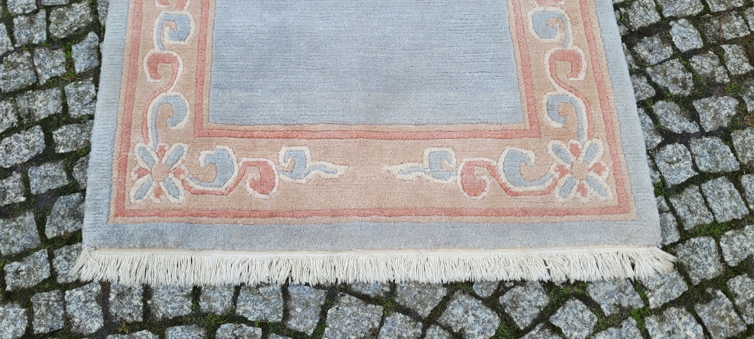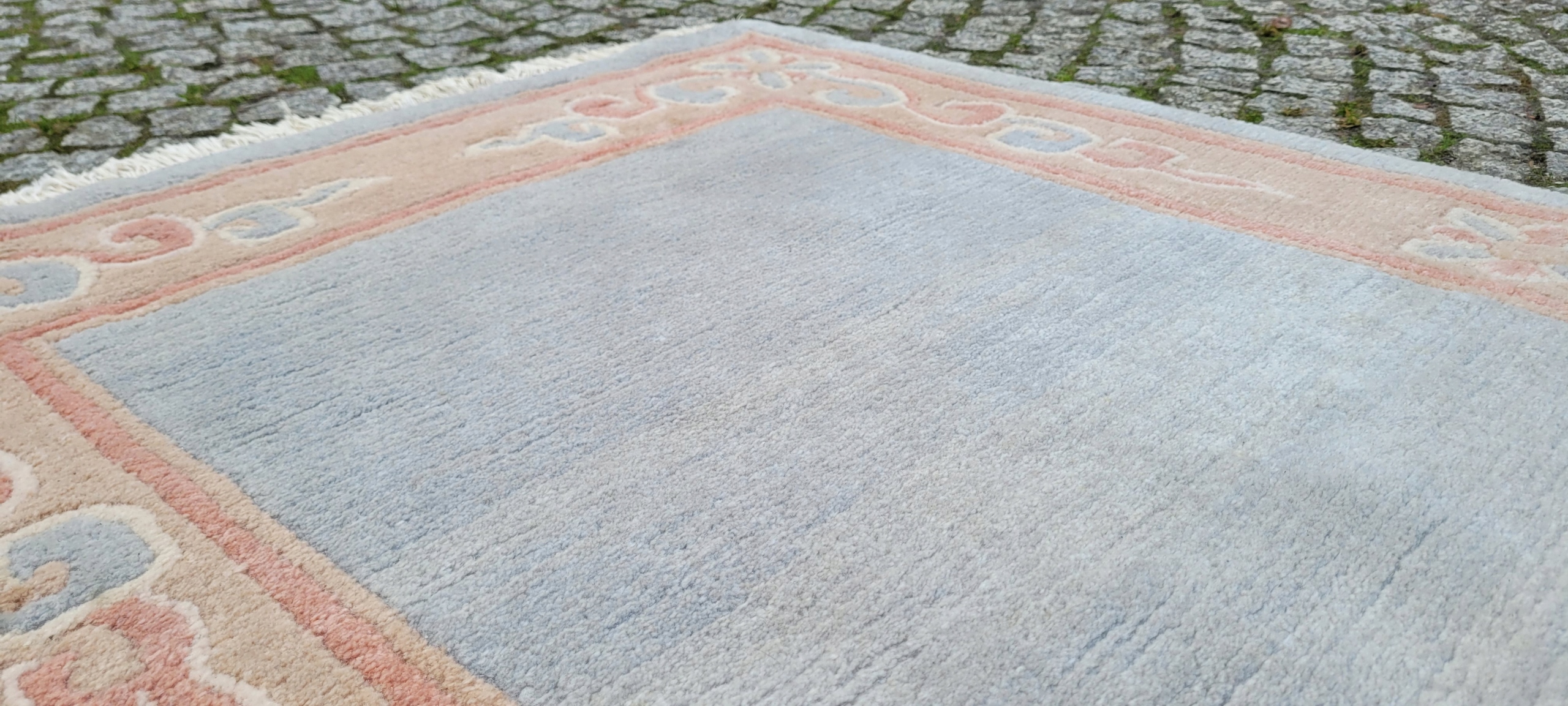 Це килим дуже високого класу, витканий у майстернях в Індії. Трохи складніше, з сучасними лекалами. Зараз цей килим фарбують у пастельні кольори, відповідно до вимог західних замовників. Універсальні малюнки роблять цей килим підходящим для багатьох інтер'єрів.
