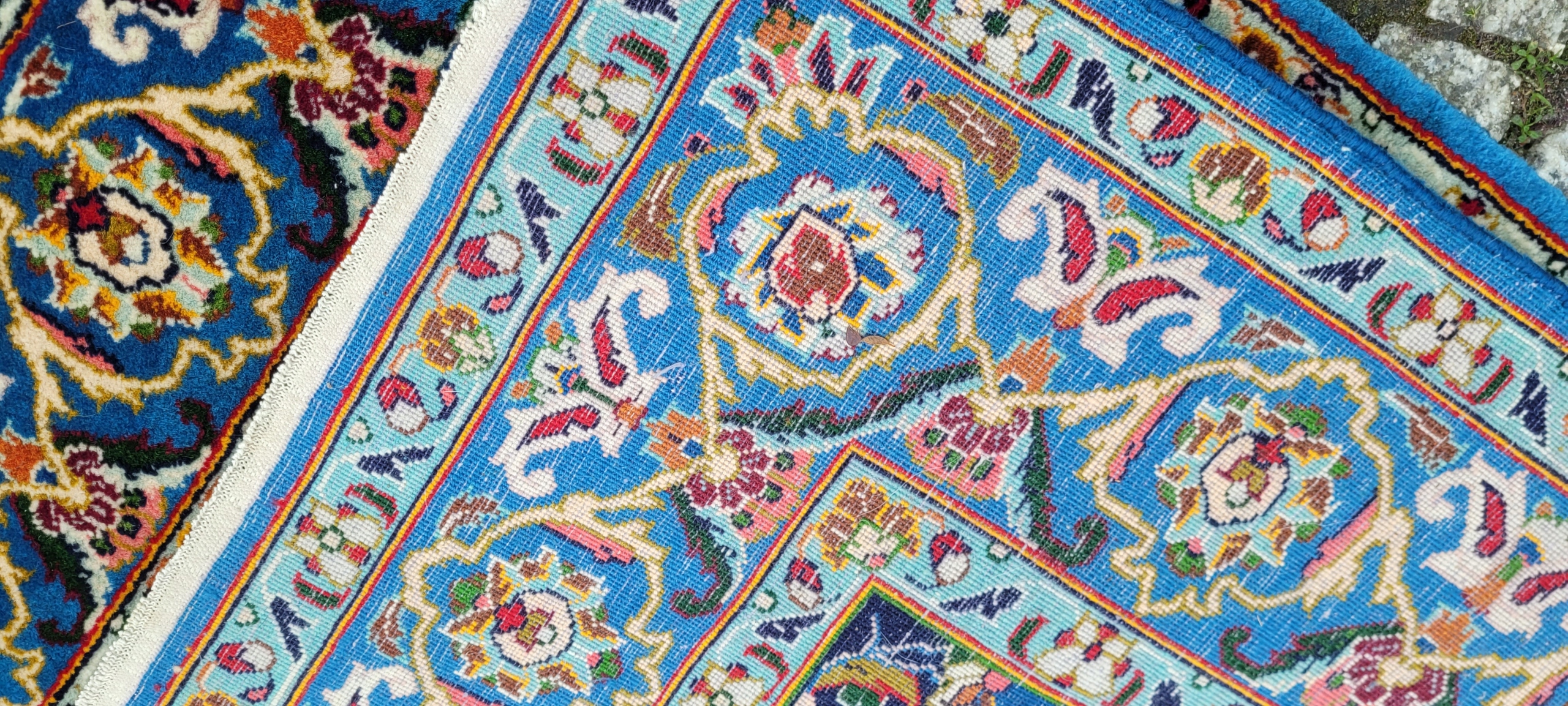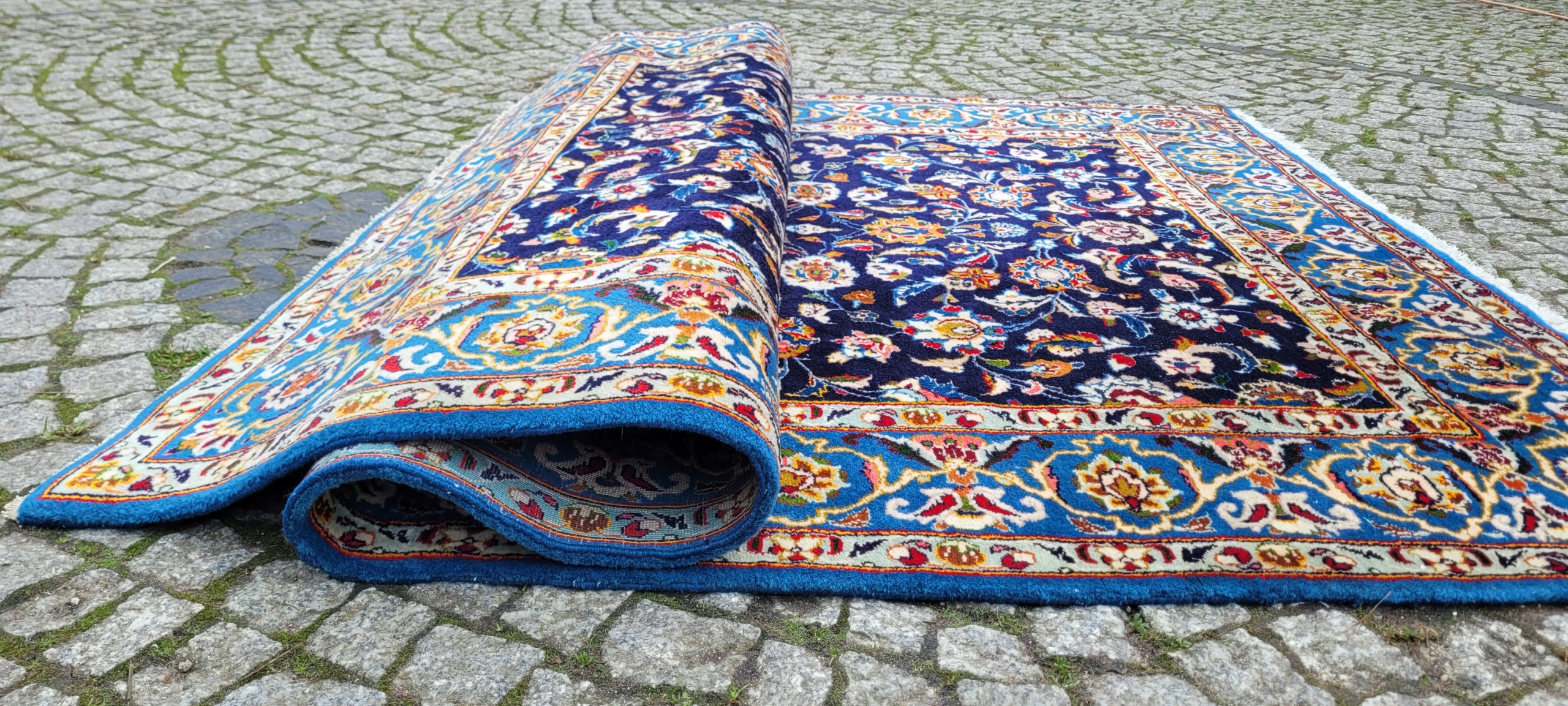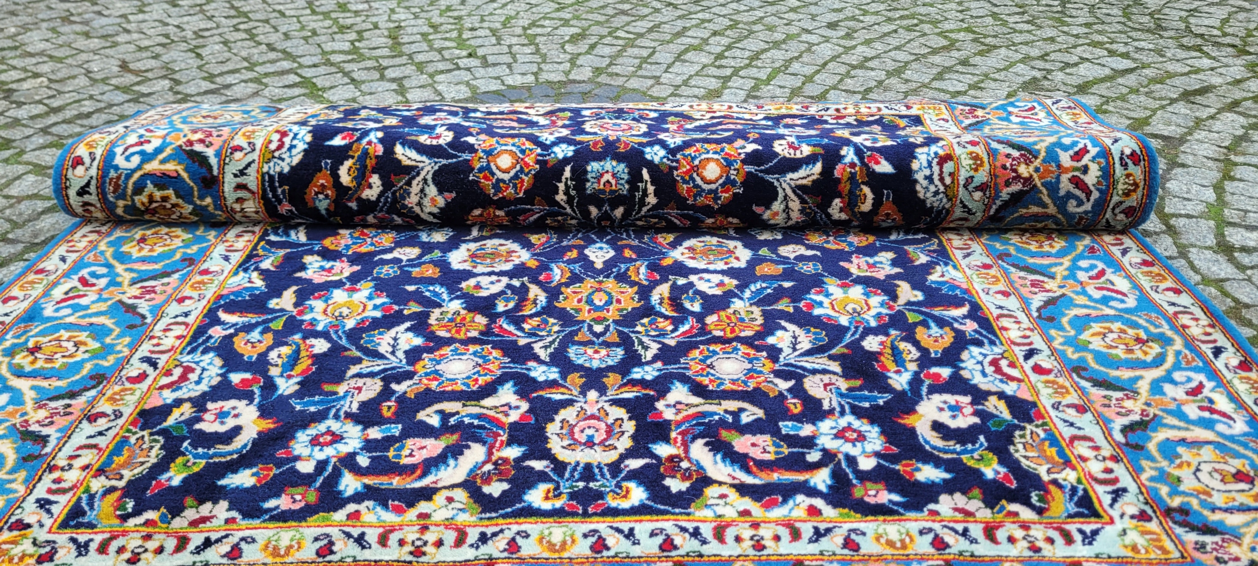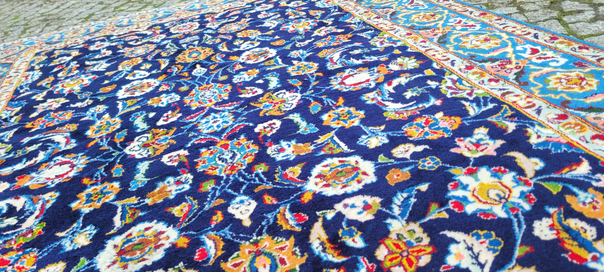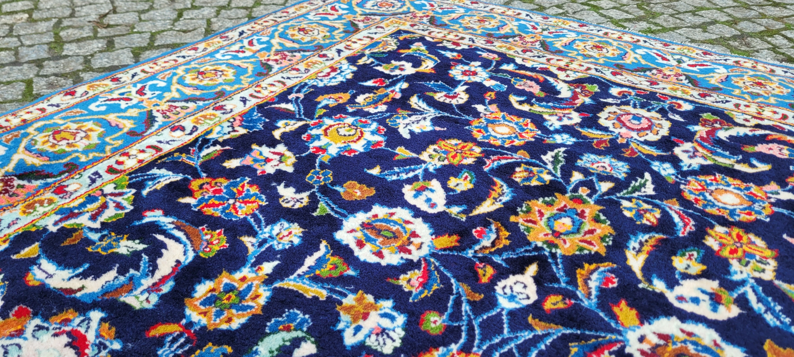 Перський кешанський килим. Виткана вручну з блискучої вовни найвищої якості. Характеризується компактним, приємним на дотик, блискучим флісом і красивими кольорами та візерунками. Килим в дуже хорошому стані, видно на фото.