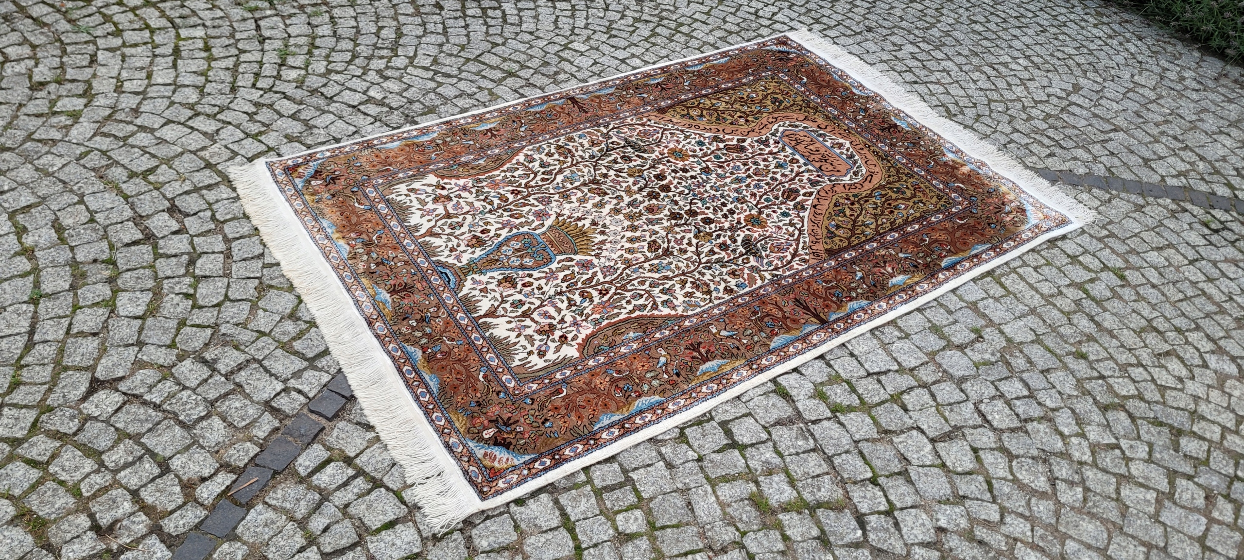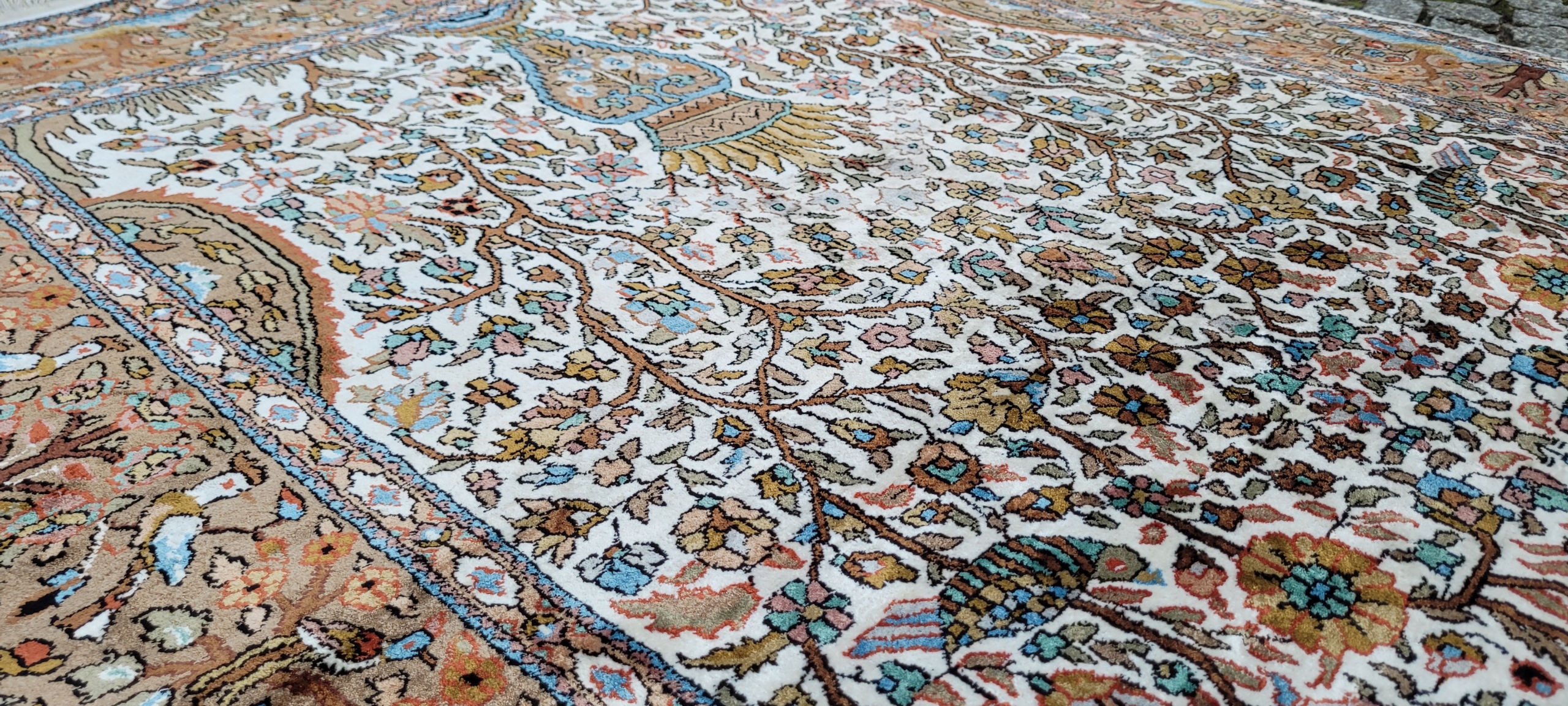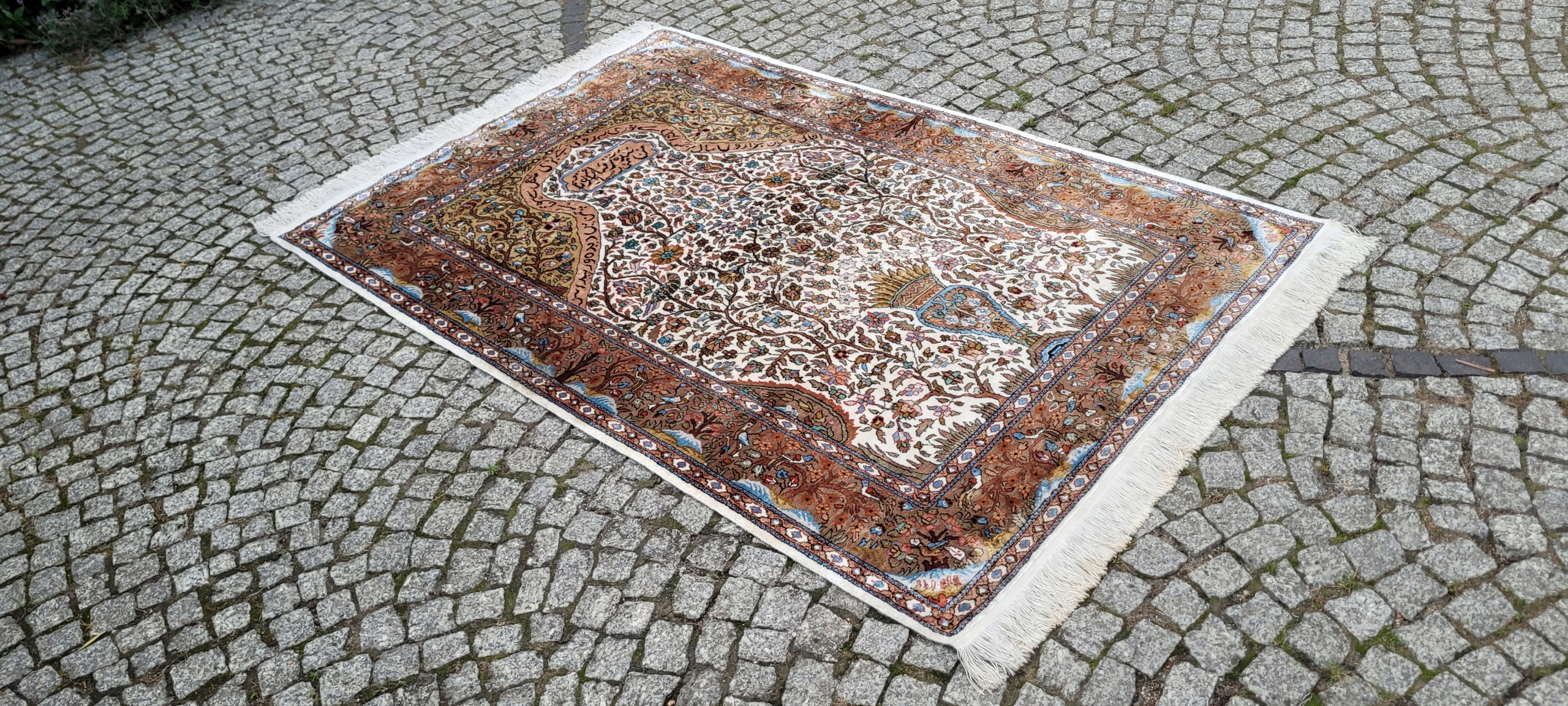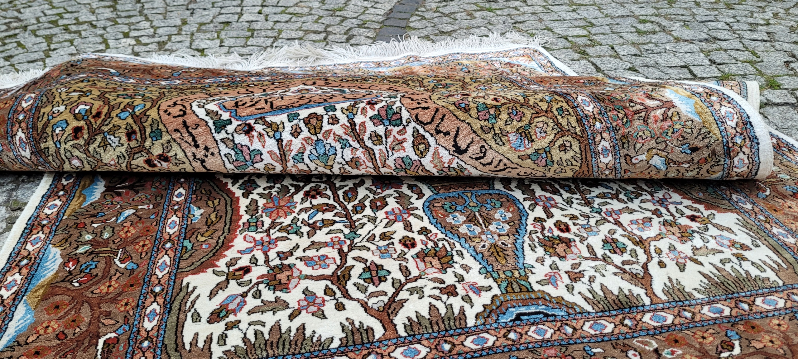 килим Ghom. Тканий шерсть і шовк. Він характеризується компактним, приємним на дотик, блискучій трубі та красиві кольори та дизайну. Він зберігається в хорошому стані, видно на знімках. 4 1000 000 Вт/м2