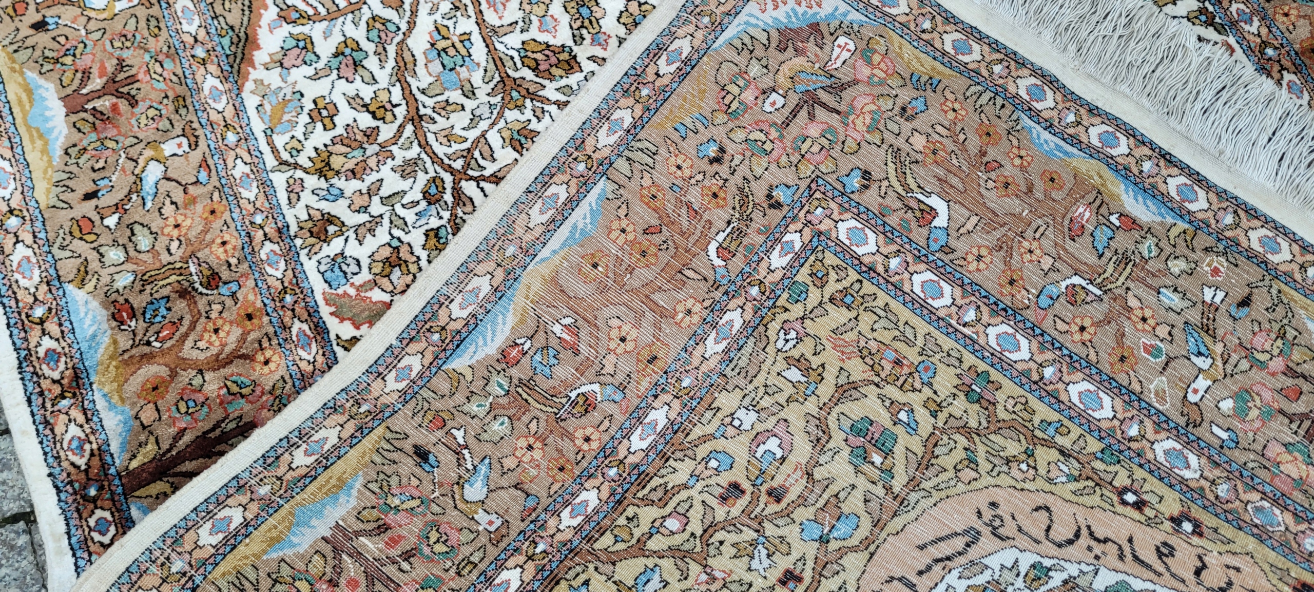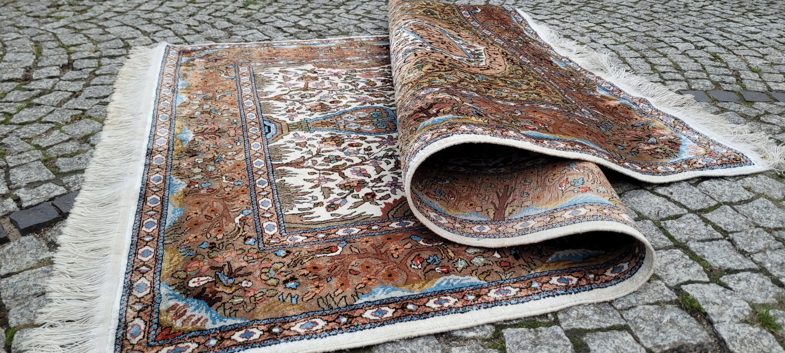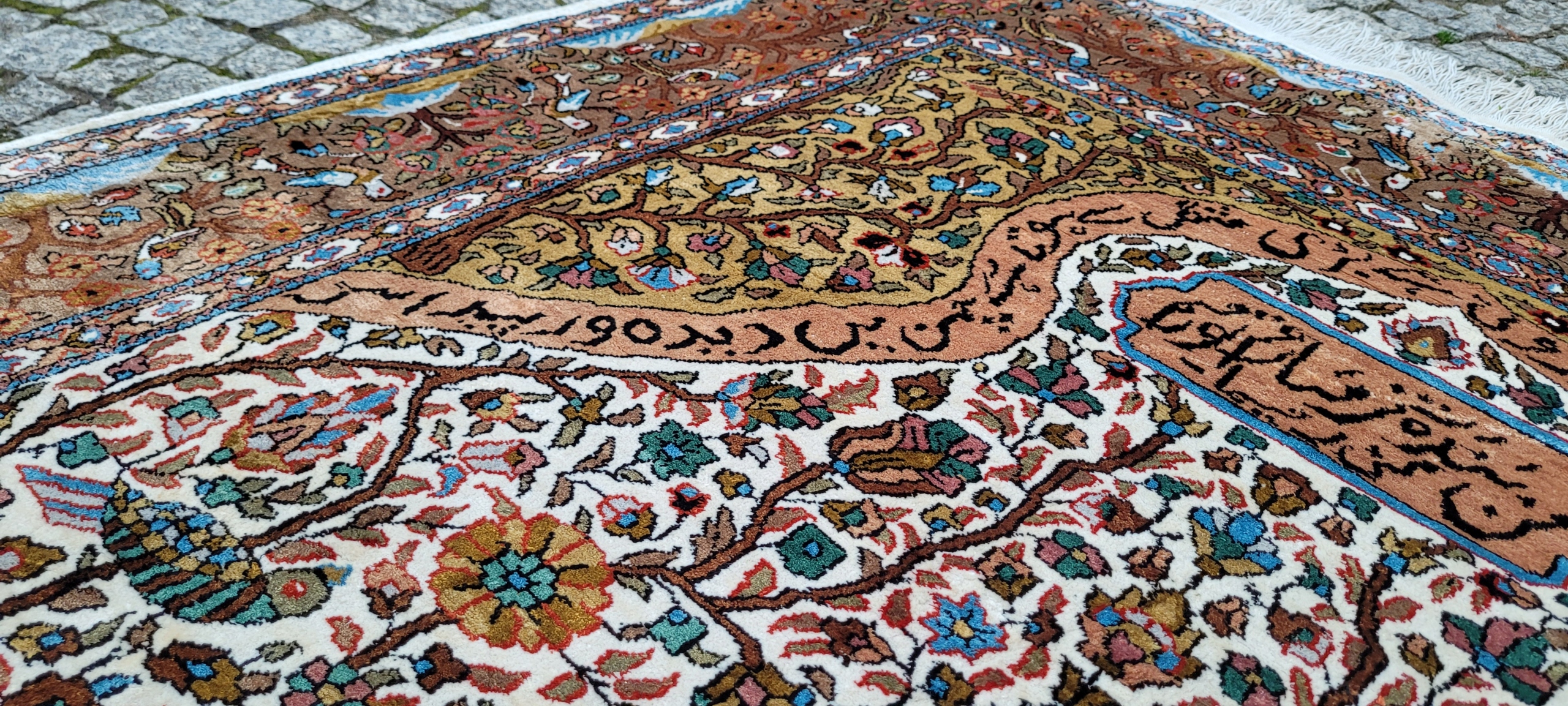 килим Ghom. Тканий шерсть і шовк. Він характеризується компактним, приємним на дотик, блискучій трубі та красиві кольори та дизайну. Він зберігається в хорошому стані, видно на знімках. 4 1000 000 Вт/м2