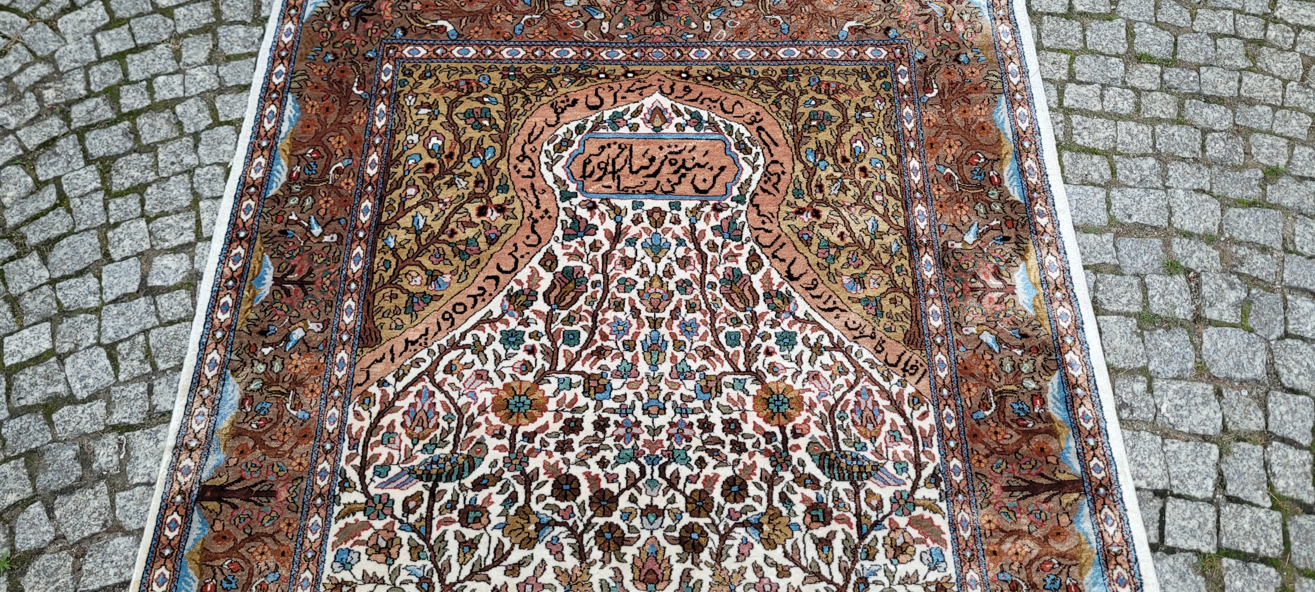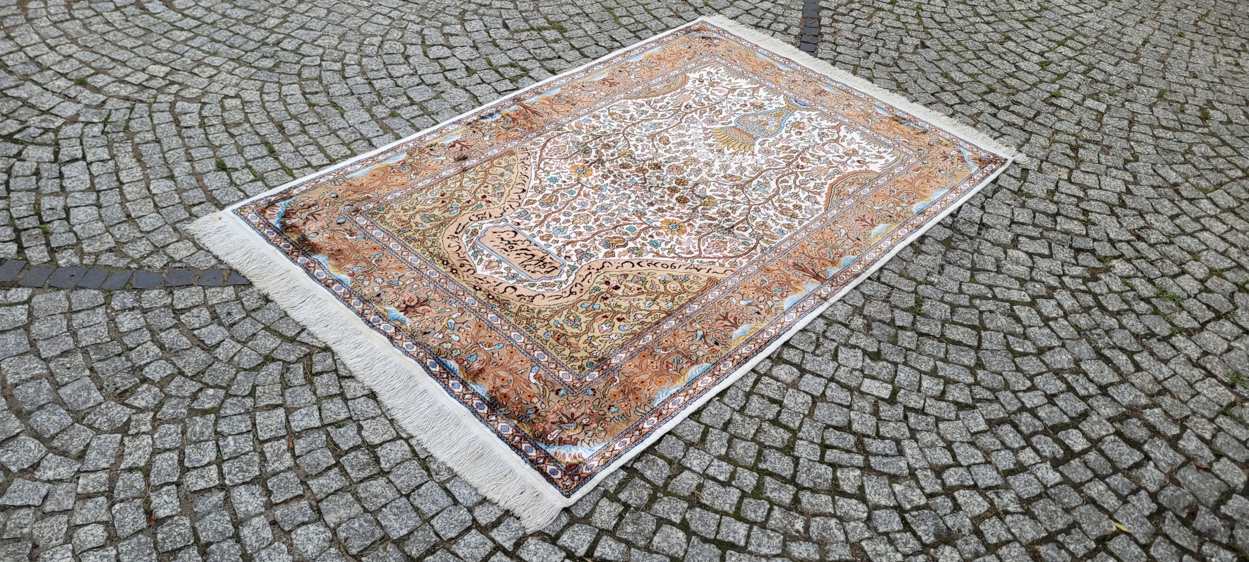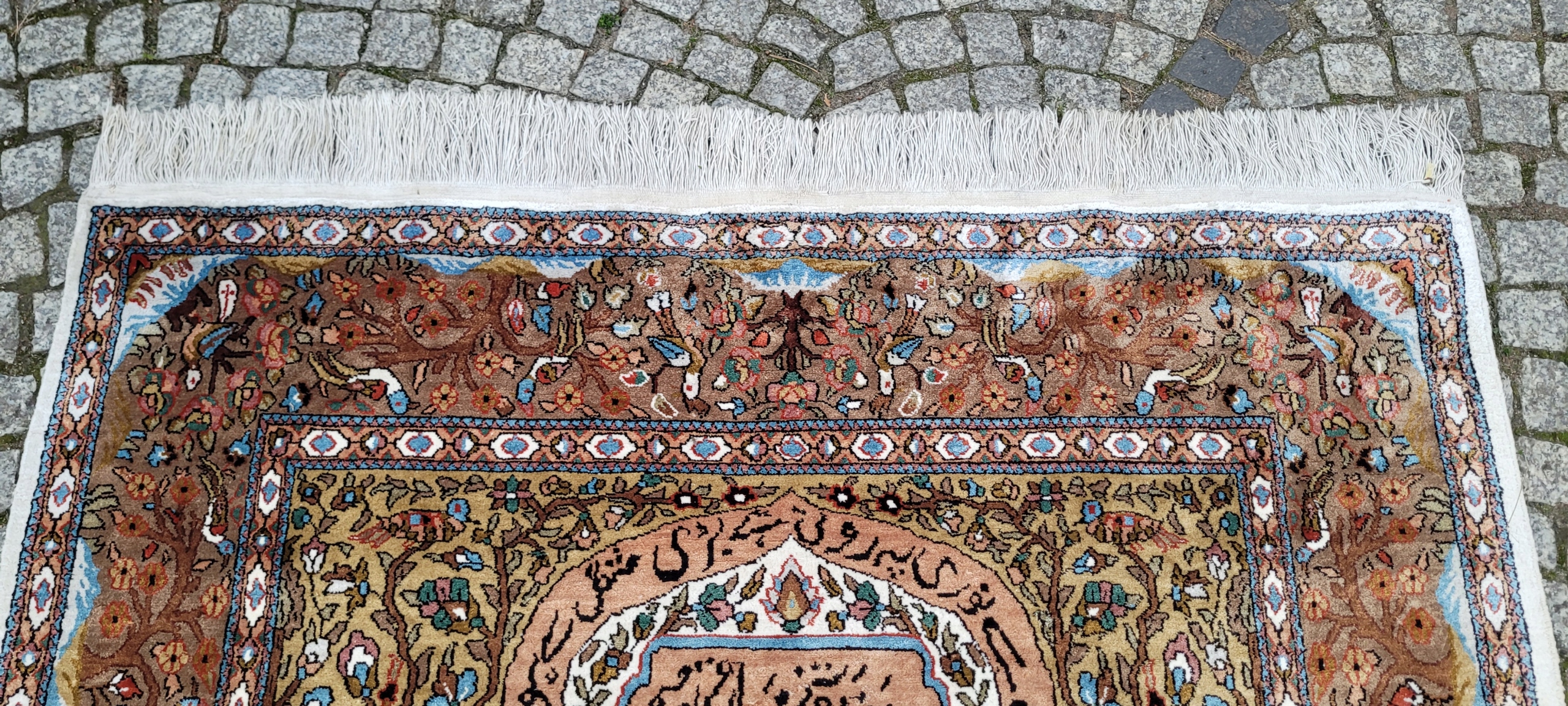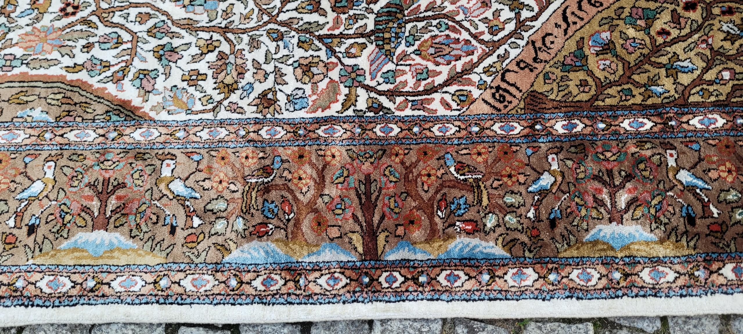 килим Ghom. Тканий шерсть і шовк. Він характеризується компактним, приємним на дотик, блискучій трубі та красиві кольори та дизайну. Він зберігається в хорошому стані, видно на знімках. 4 1000 000 Вт/м2