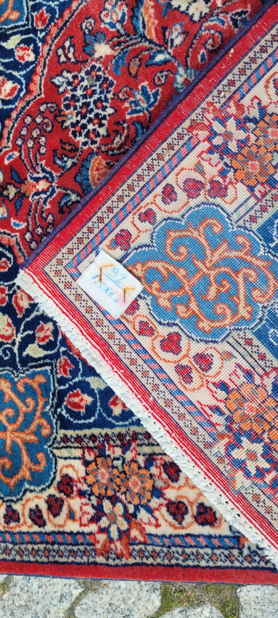 Перський античний килим саруг. Виткана вручну з вовни найвищої якості. Характеризується компактним, приємним на дотик, блискучим флісом і красивими кольорами та візерунками. В дуже хорошому стані, видно на фото.