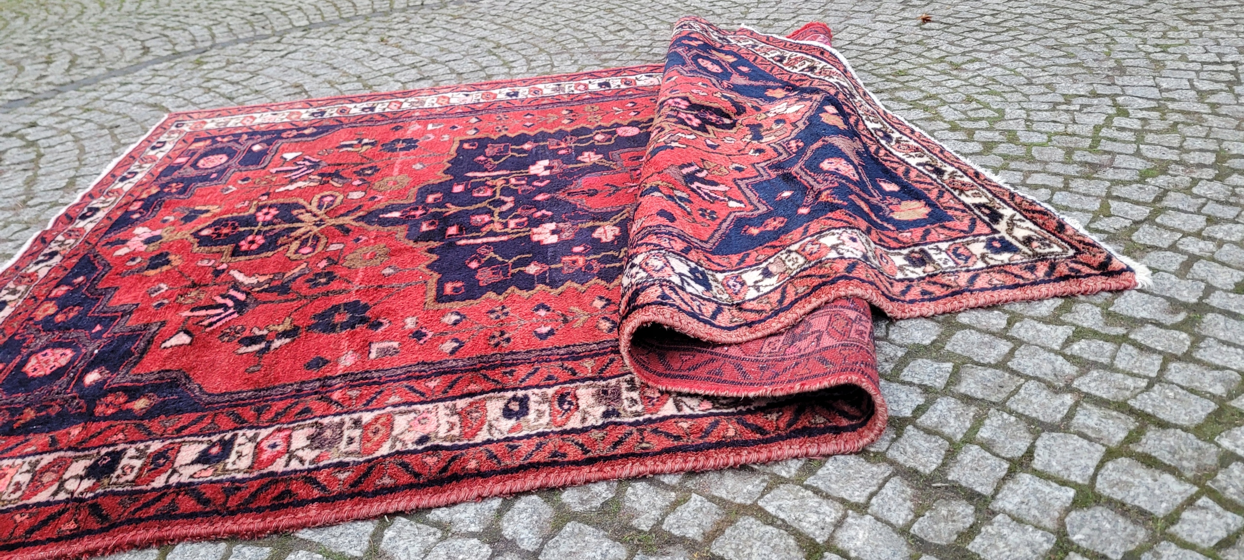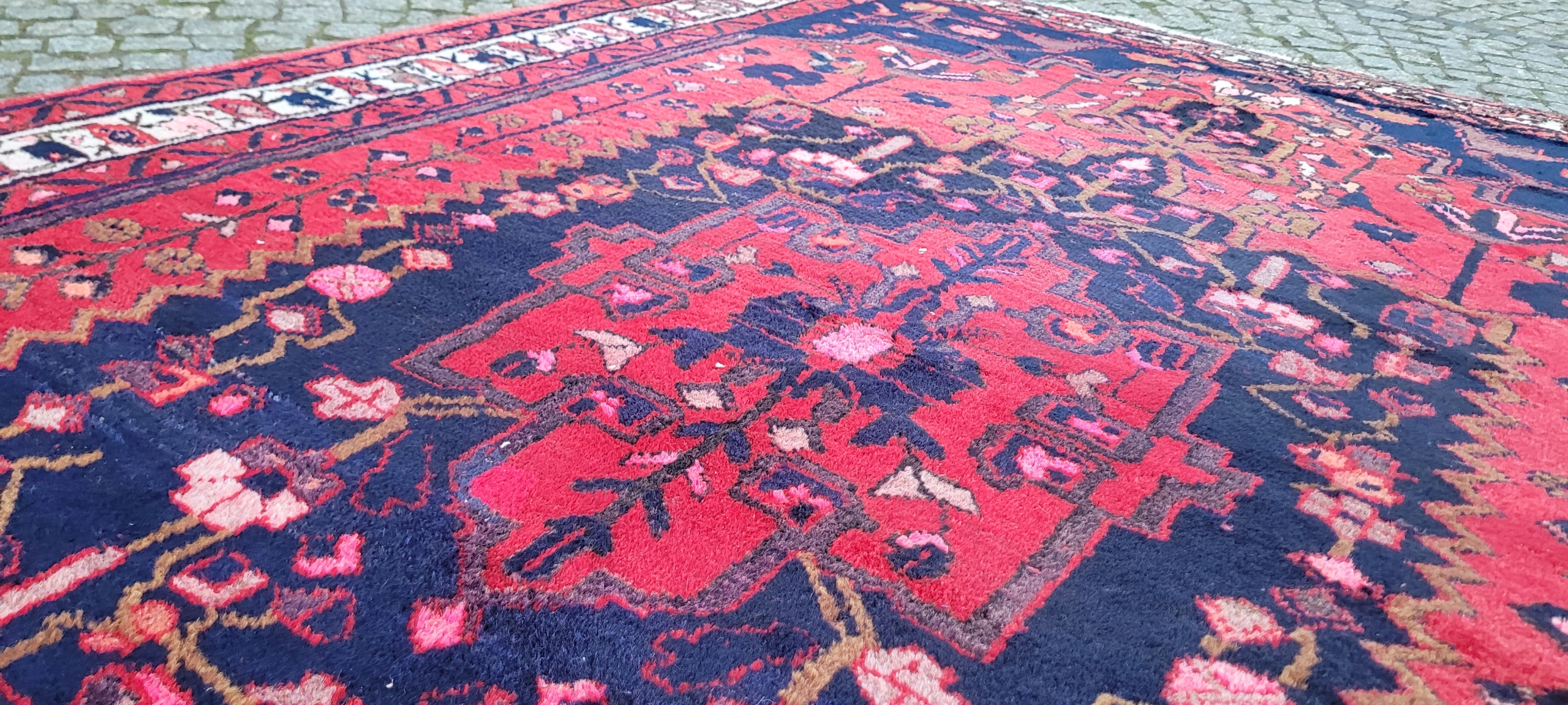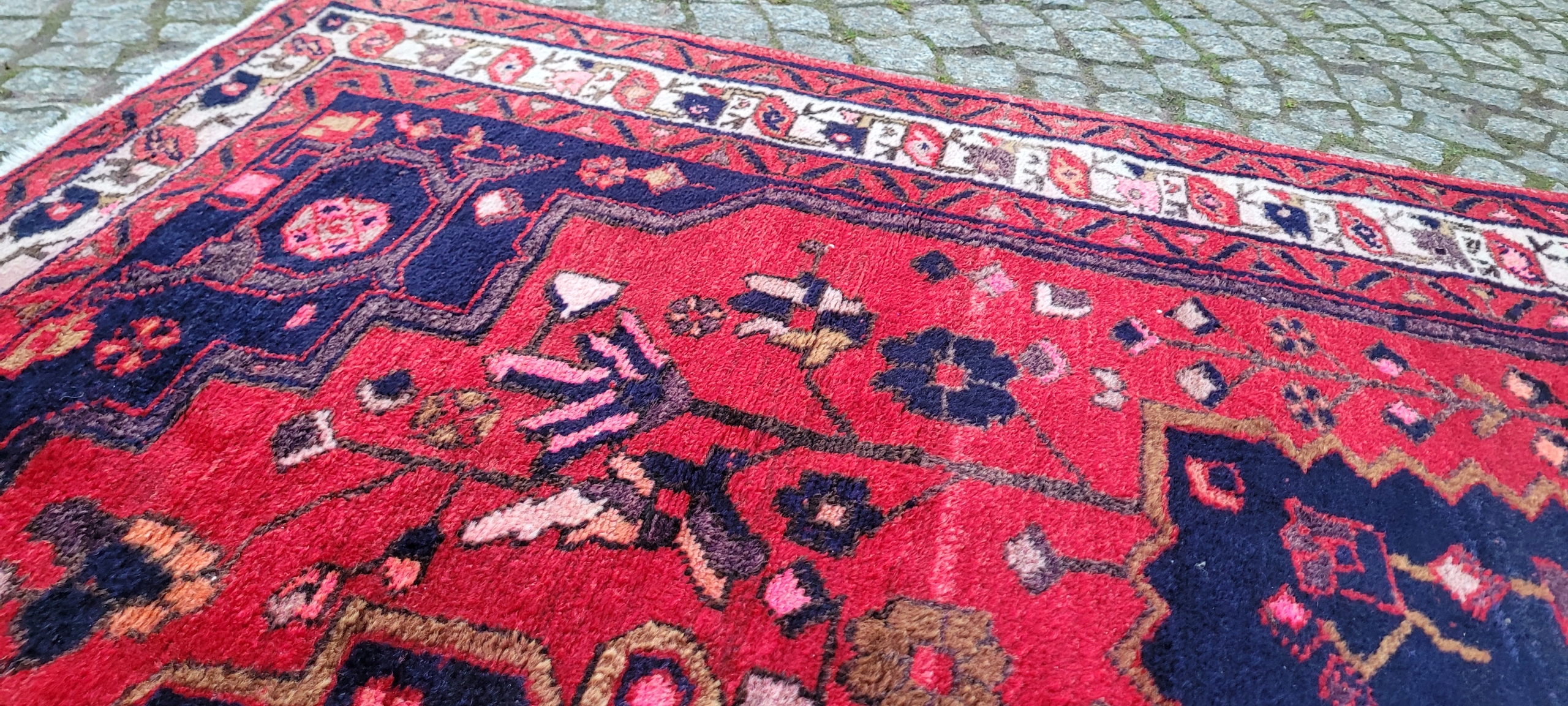 Кочовий хамаданський килим Ручного виткання з вовни найвищої якості. Характеризується щільним флісом і красивими кольорами та візерунками. Він у дуже хорошому мінусовому стані, видно на фотографіях.