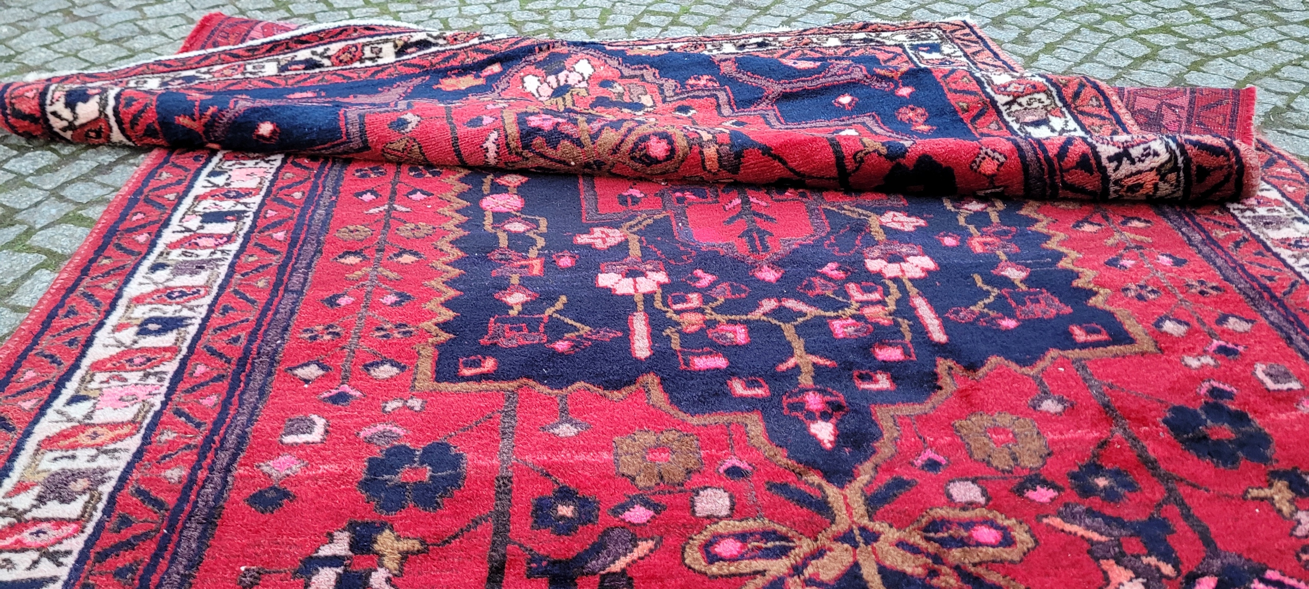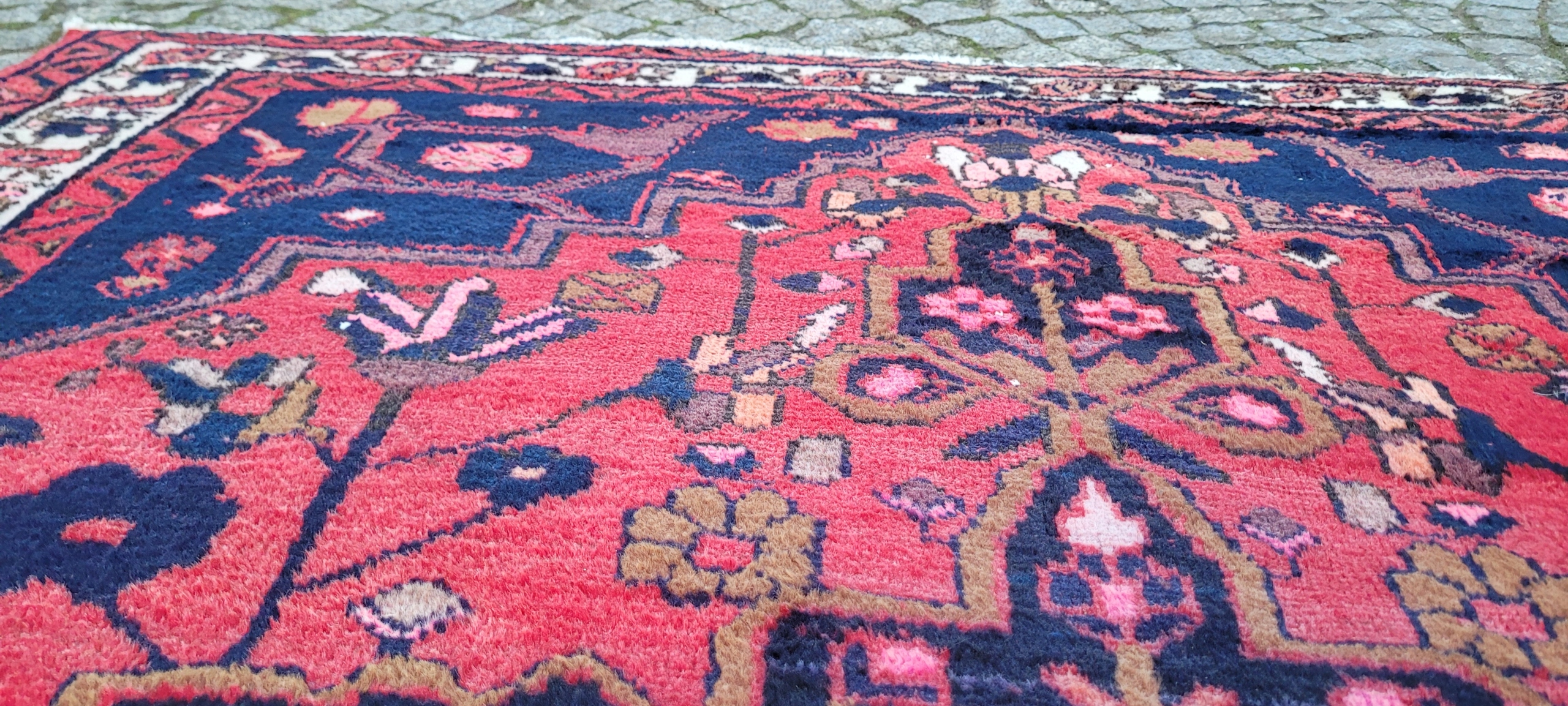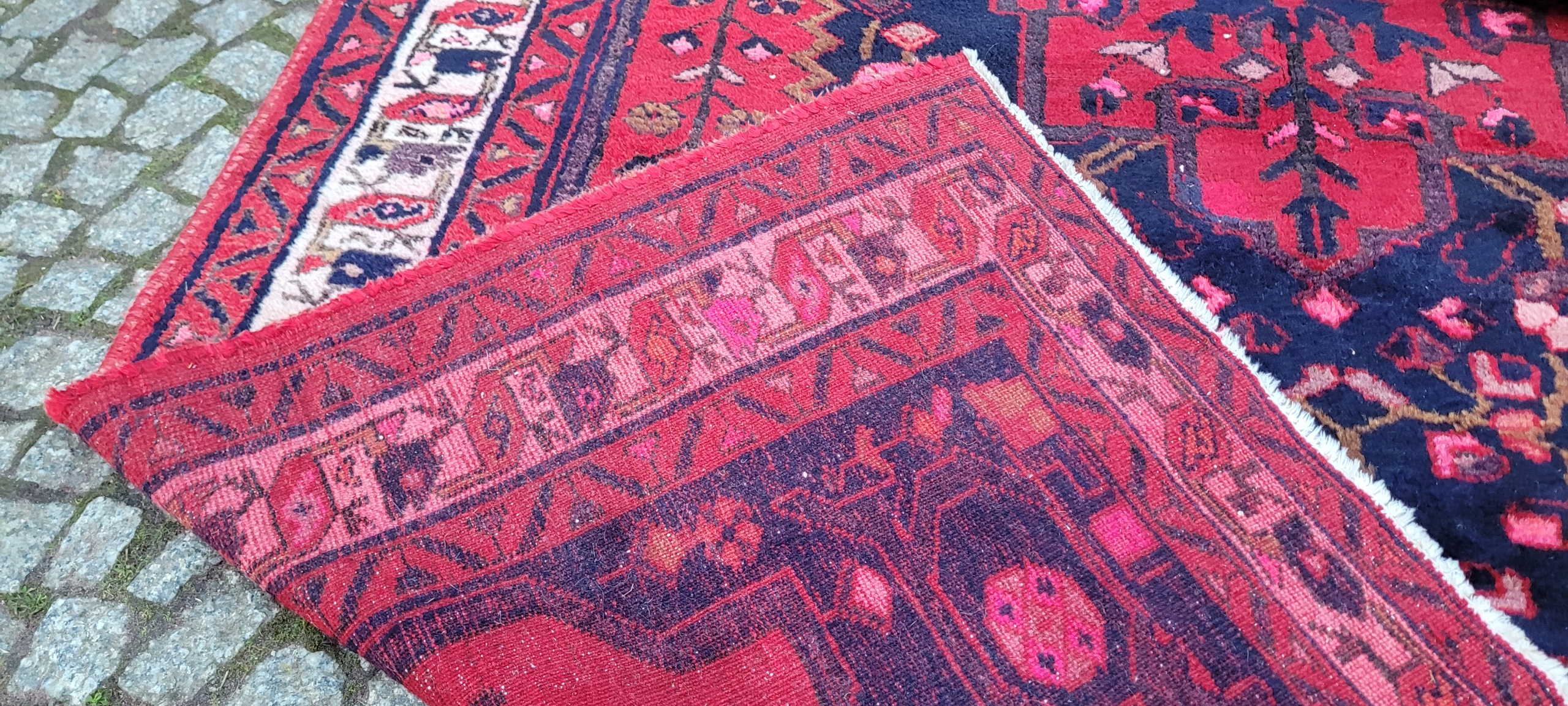 Кочовий хамаданський килим Ручного виткання з вовни найвищої якості. Характеризується щільним флісом і красивими кольорами та візерунками. Він у дуже хорошому мінусовому стані, видно на фотографіях.