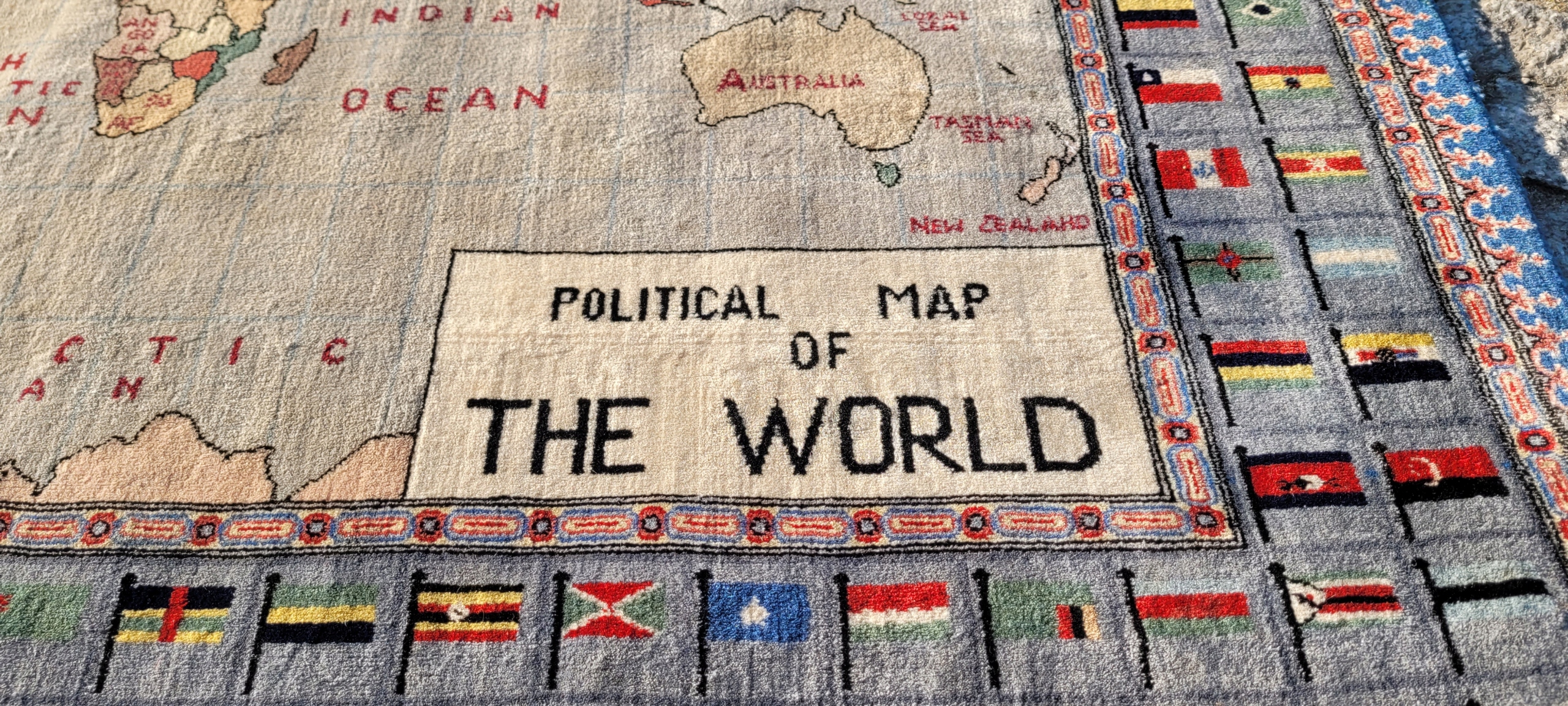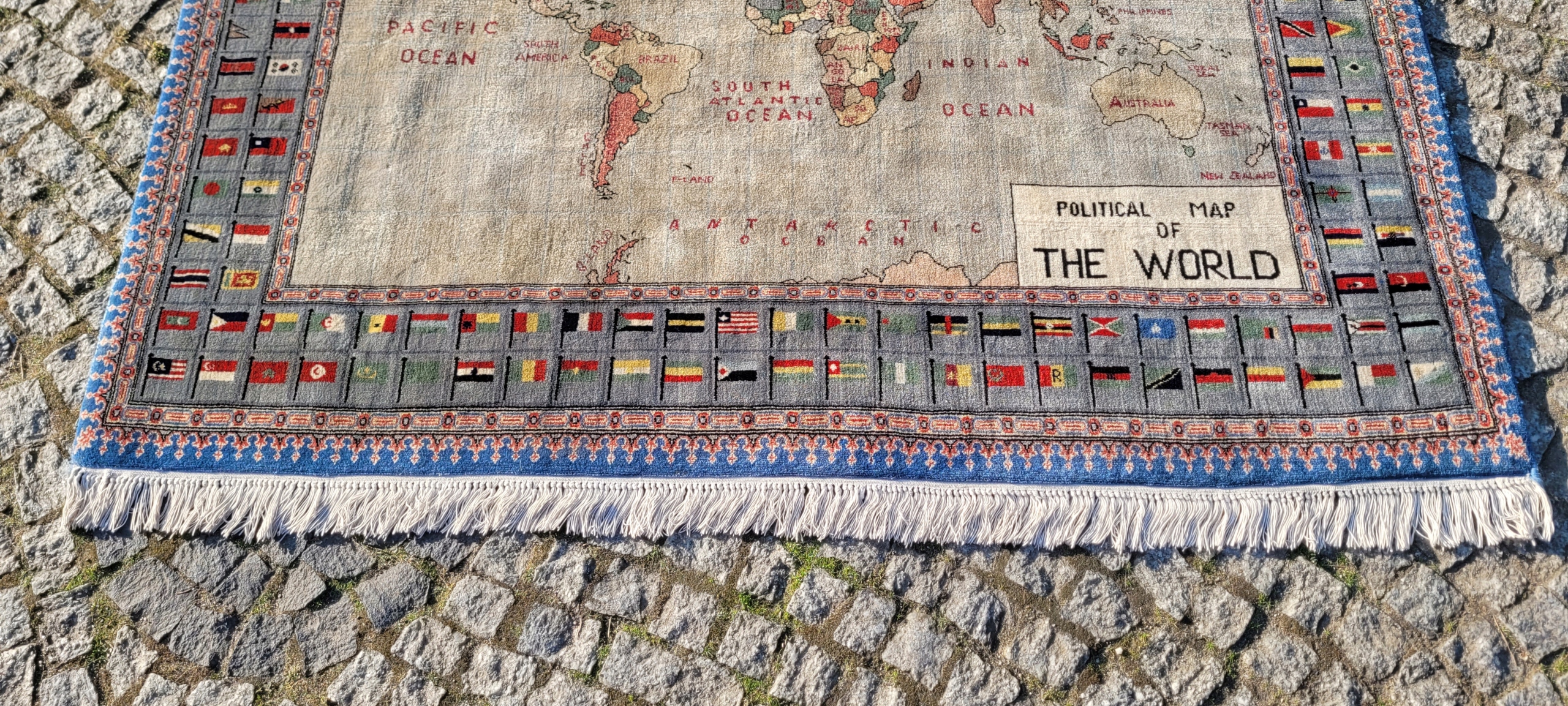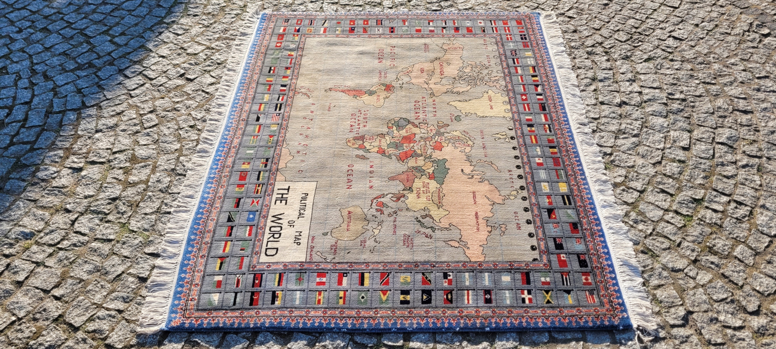 -70% НЕБАЧЕНИЙ БЛИСКУЧИЙ КИЛИМ КАРТА СВІТУ Р. ТКАНИЙ ПАКИСТАН 135/154СМ
