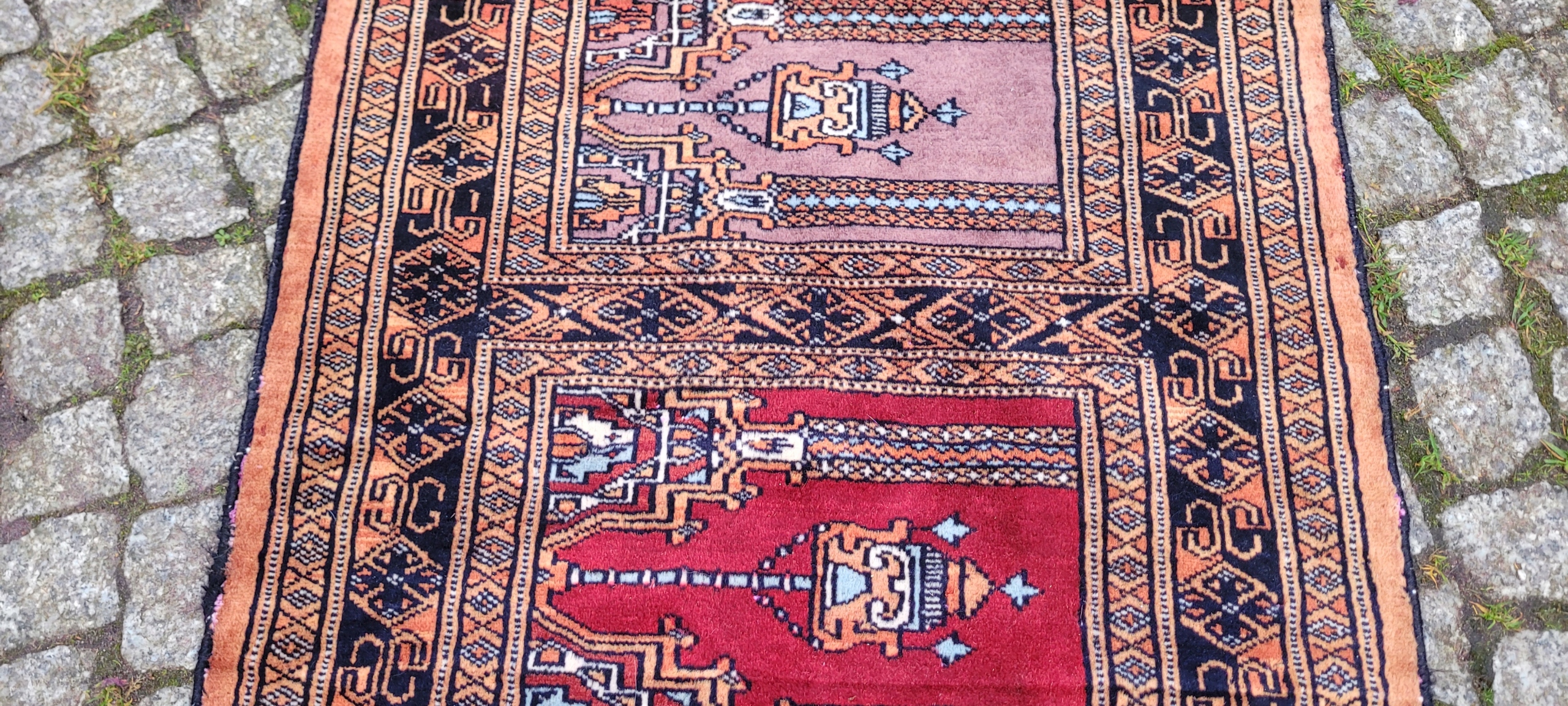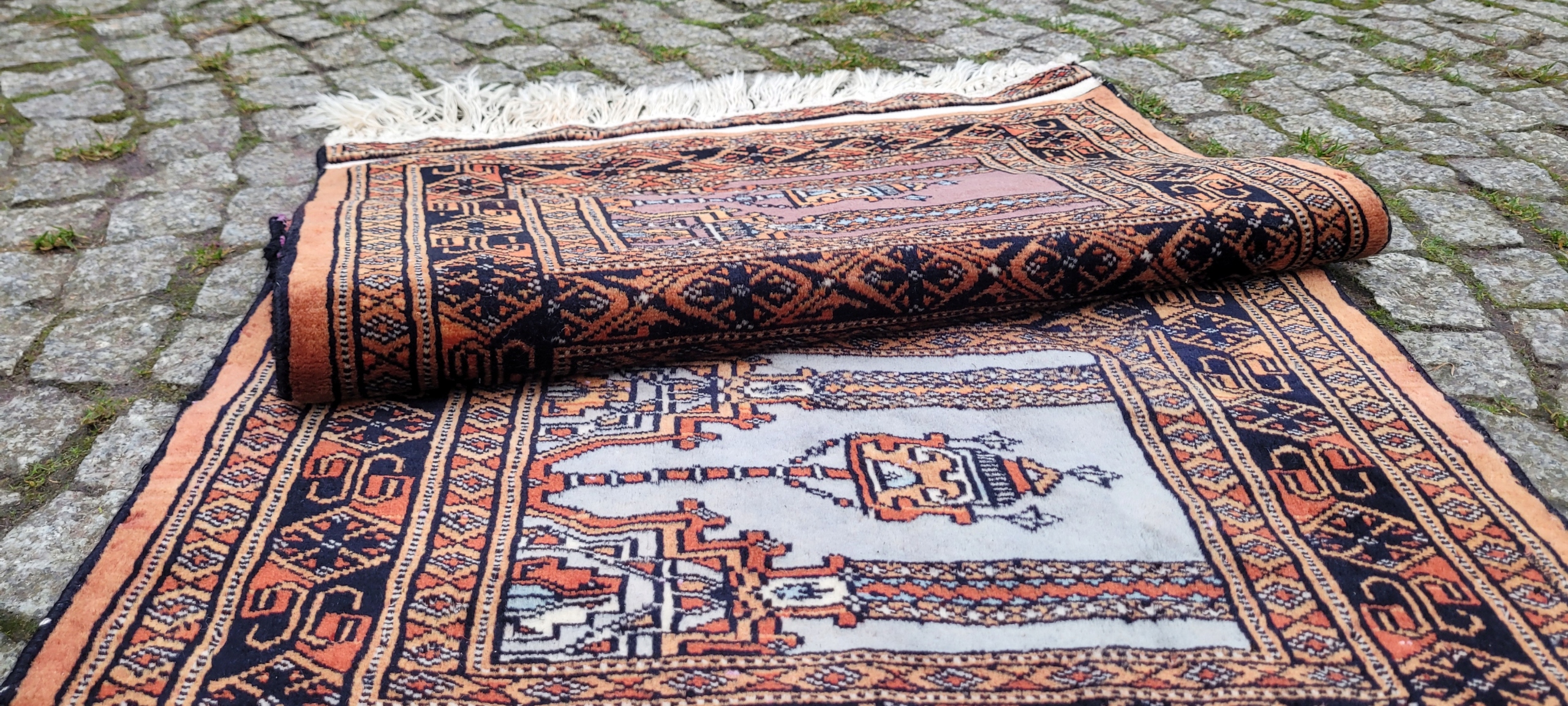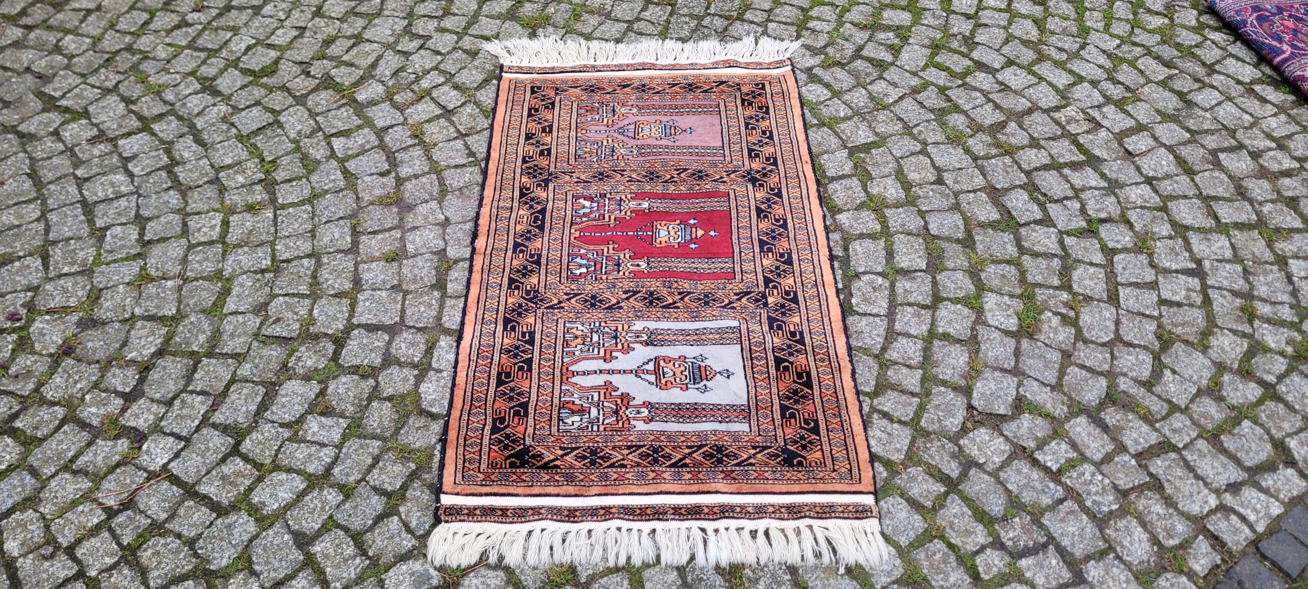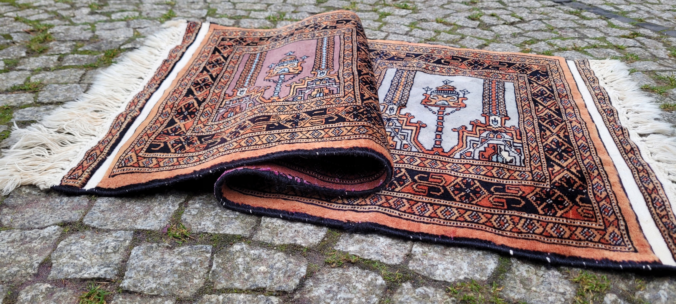 Бухарський килим. Виткана вручну з полірованої вовни найвищої якості. Характеризується компактним, приємним на дотик, блискучим флісом і красивими кольорами та візерунками. У хорошому стані, видно на фото.
