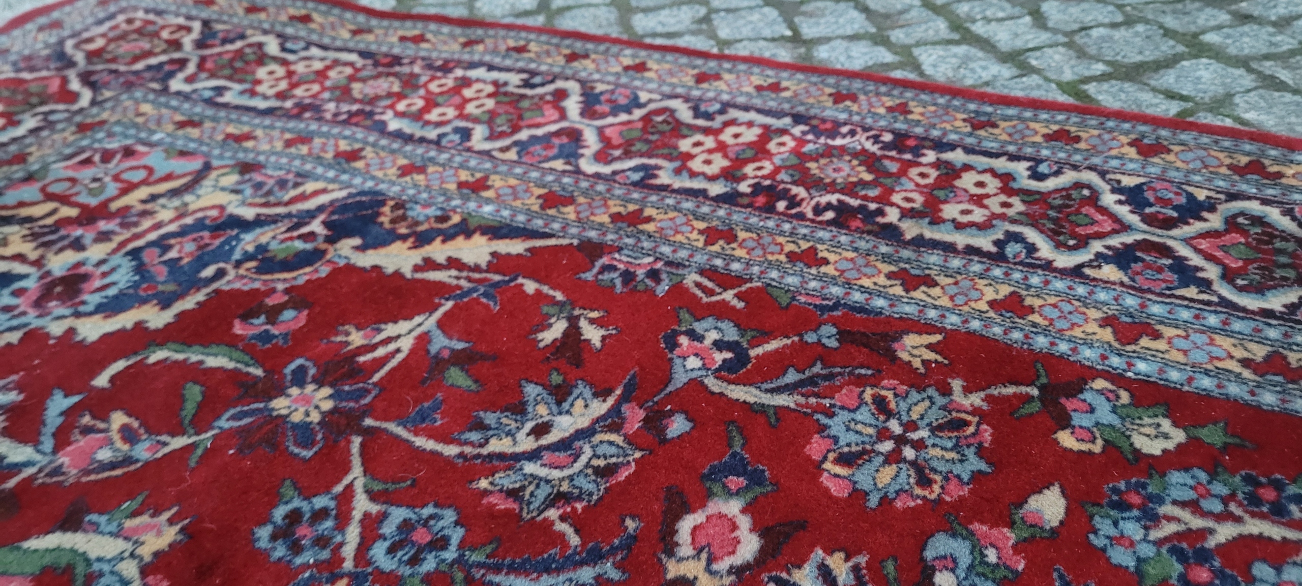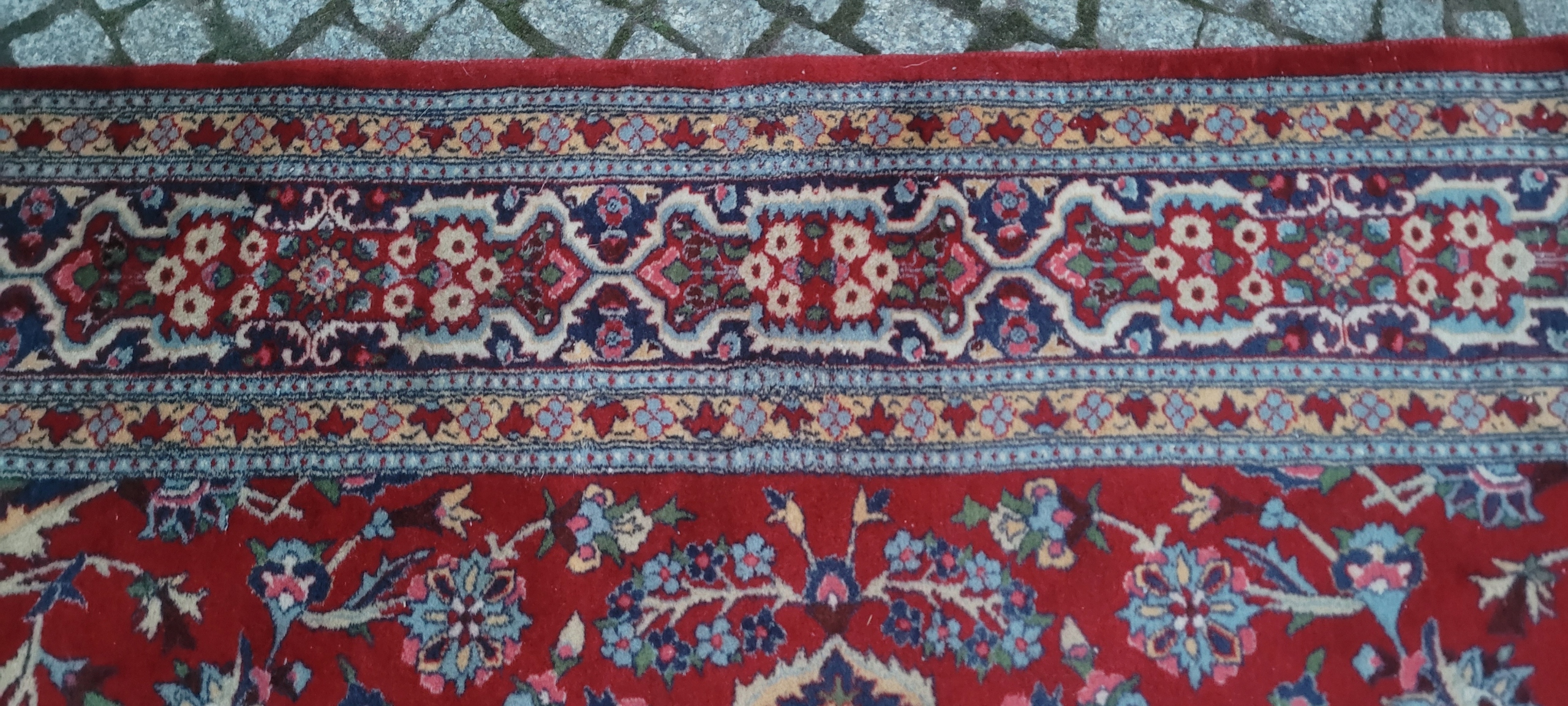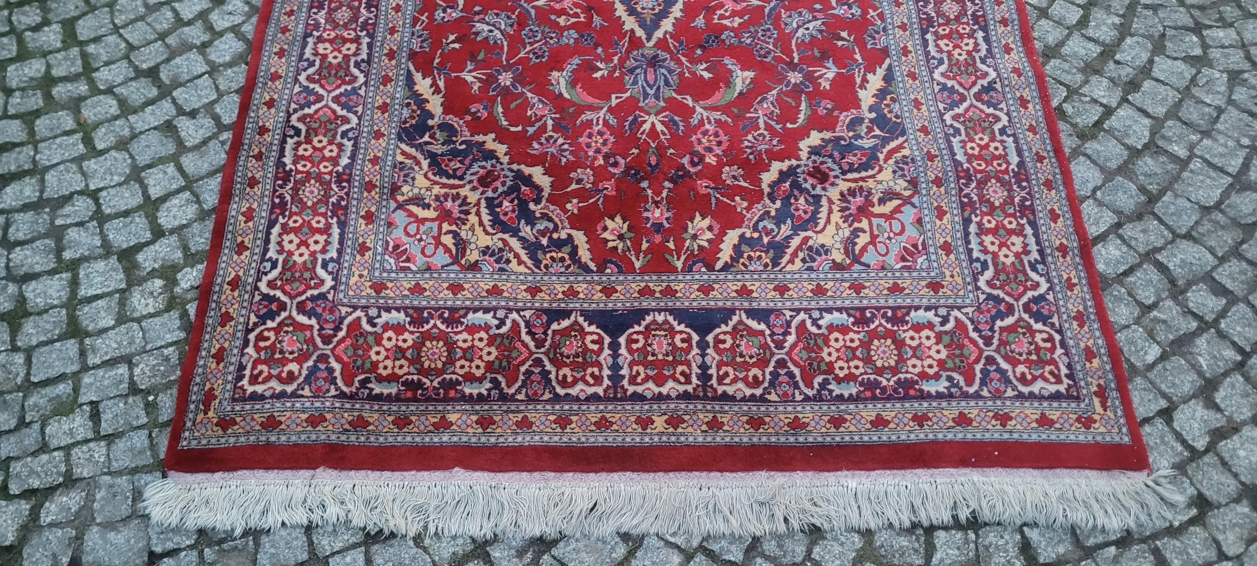 Перський кешанський килим. Виткана вручну з блискучої вовни найвищої якості. Характеризується компактним, приємним на дотик, блискучим флісом і красивими кольорами та візерунками. Килим в дуже хорошому стані, видно на фото.