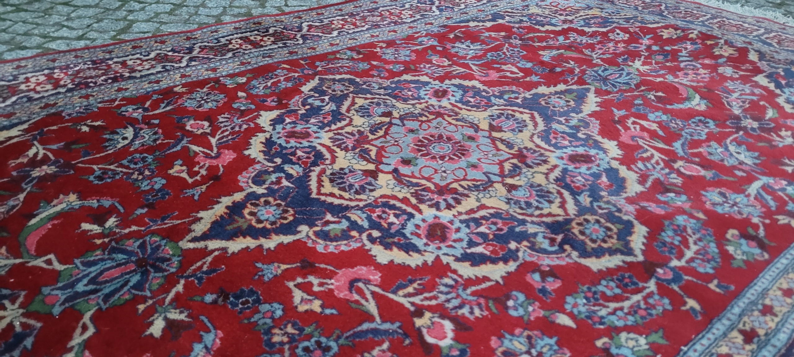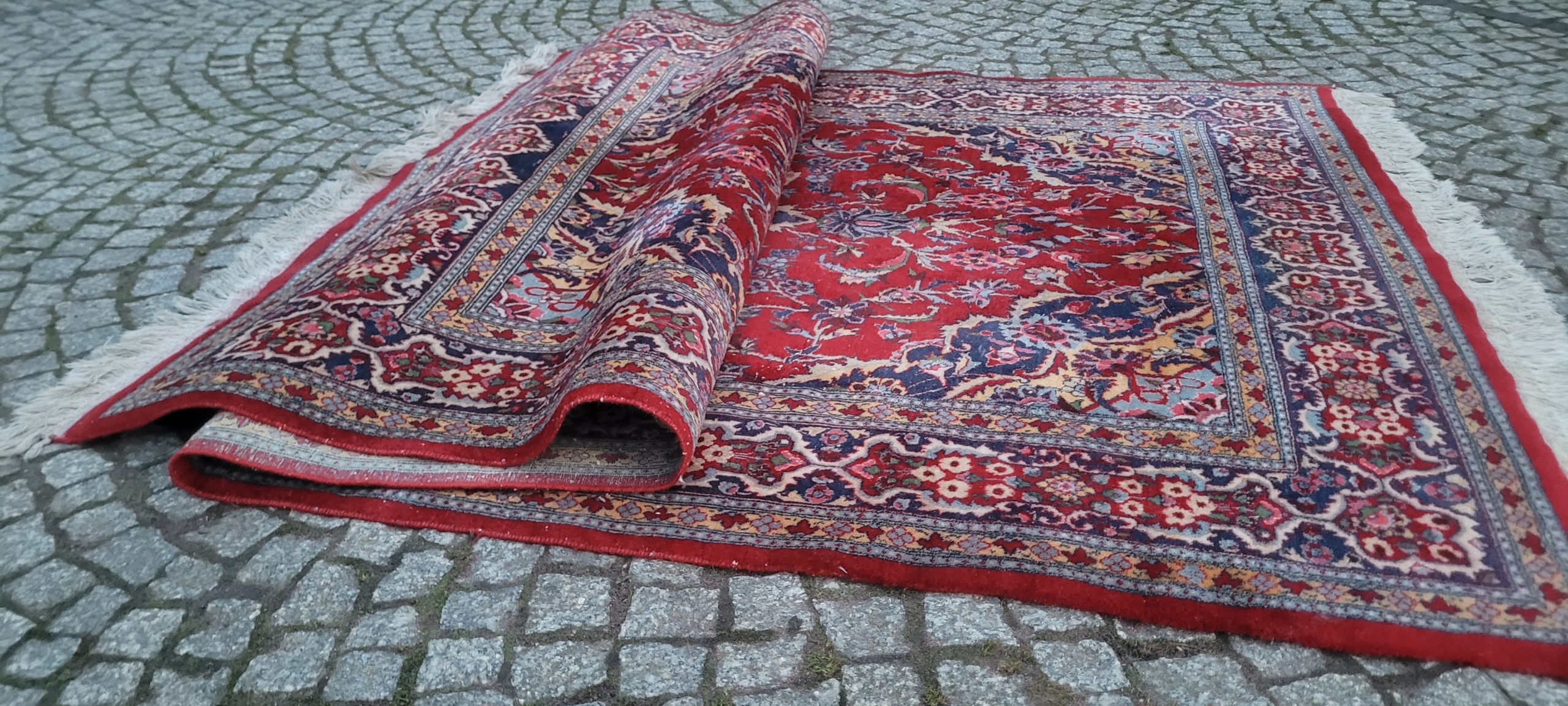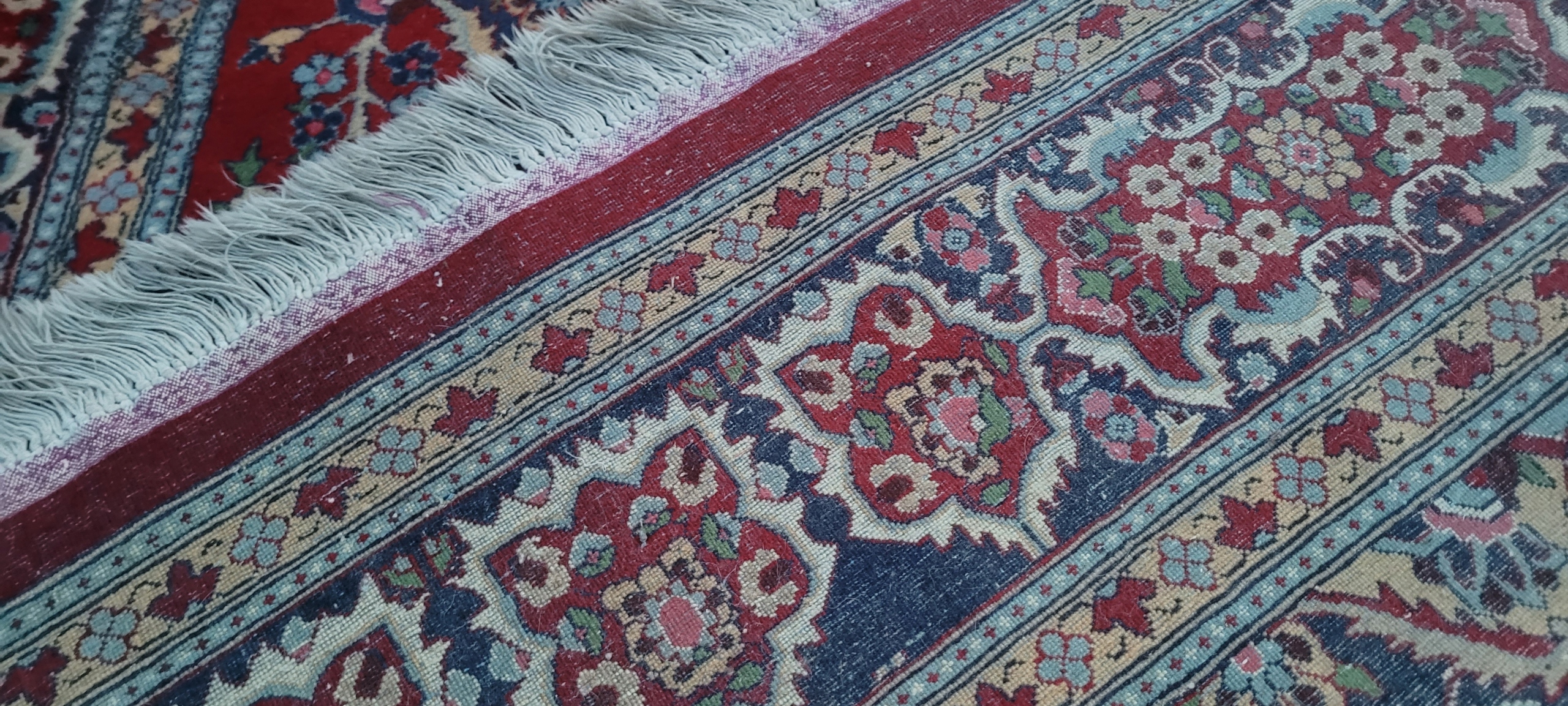 Перський кешанський килим. Виткана вручну з блискучої вовни найвищої якості. Характеризується компактним, приємним на дотик, блискучим флісом і красивими кольорами та візерунками. Килим в дуже хорошому стані, видно на фото.