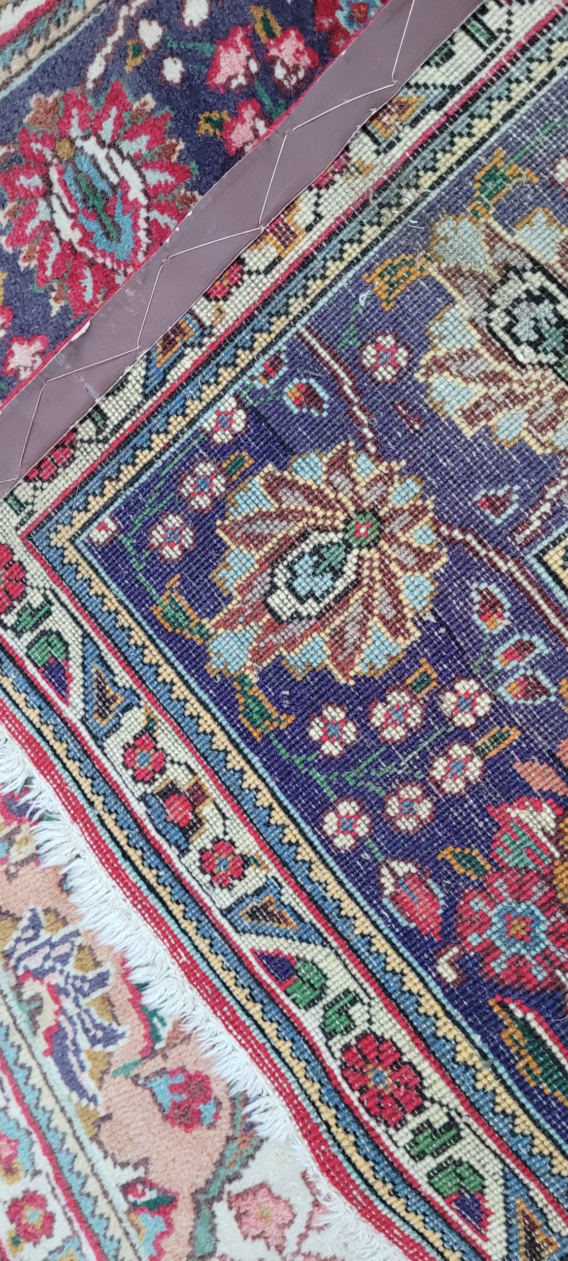 Тебризький перський килим. Виткана вручну з вовни найвищої якості. Характеризується компактним, приємним на дотик флісом і красивими кольорами та візерунками. В хорошому стані, на фото видно мінуси. Має нерівномірну патину.