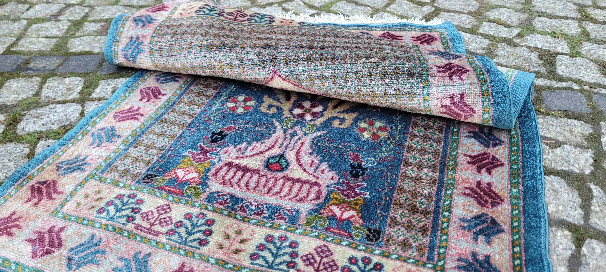 Туніський килим. Ручна робота з натурального шовку найвищої якості. Характеризується компактним, приємним на дотик, блискучим флісом і красивими кольорами та візерунками. У хорошому стані, видно на фотографіях.