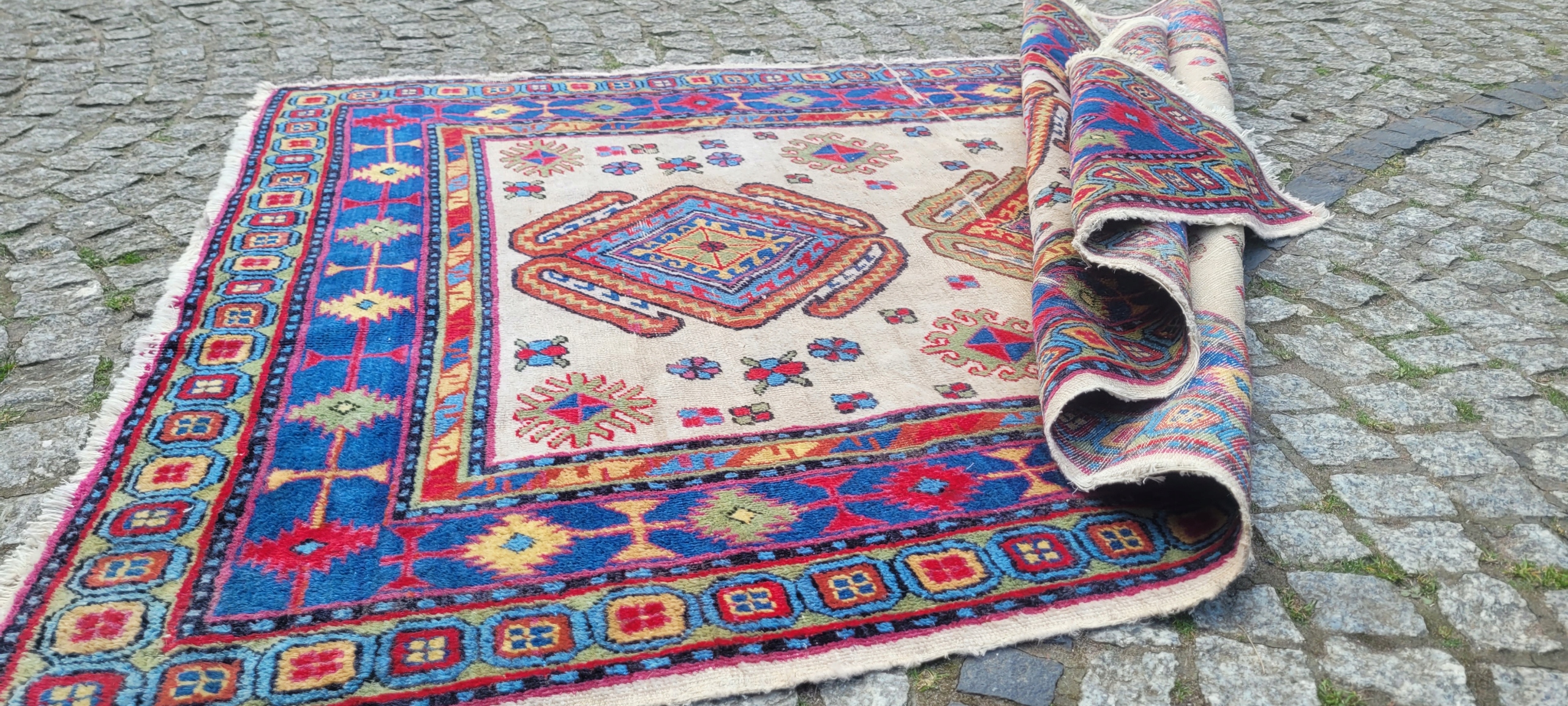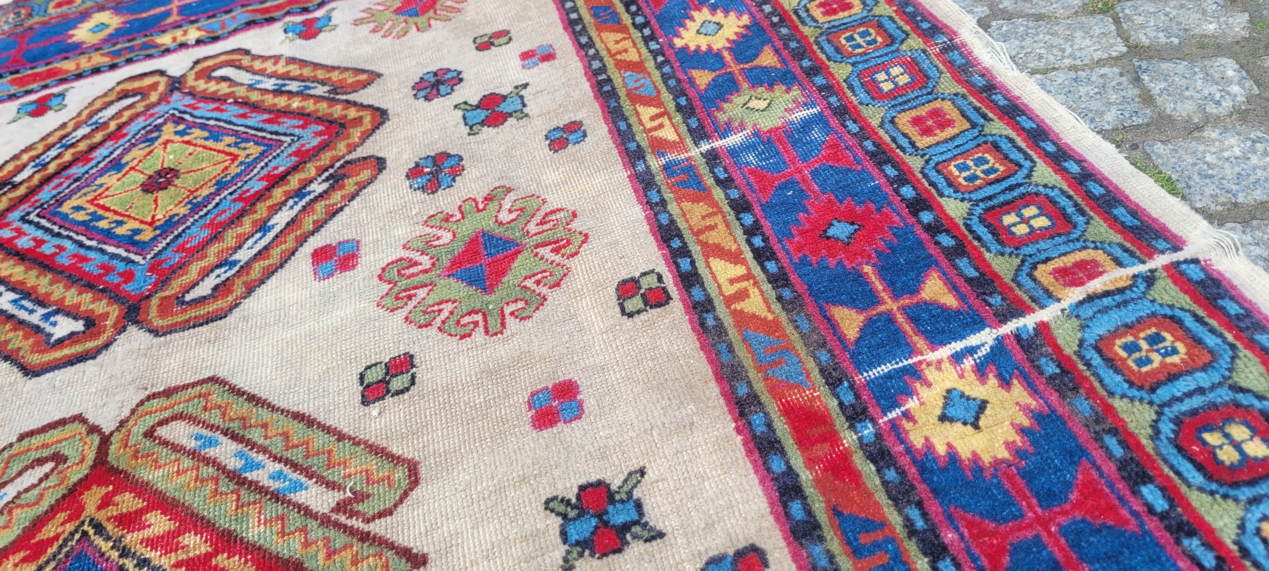 Красивий, Казак Казак. Сплетений вручну від найвищої якості вовни. Він характеризується компактним, флісом та красивими кольорами та дизайном. Він зберігається в хорошому стані, видно на знімках. Копія колектора.