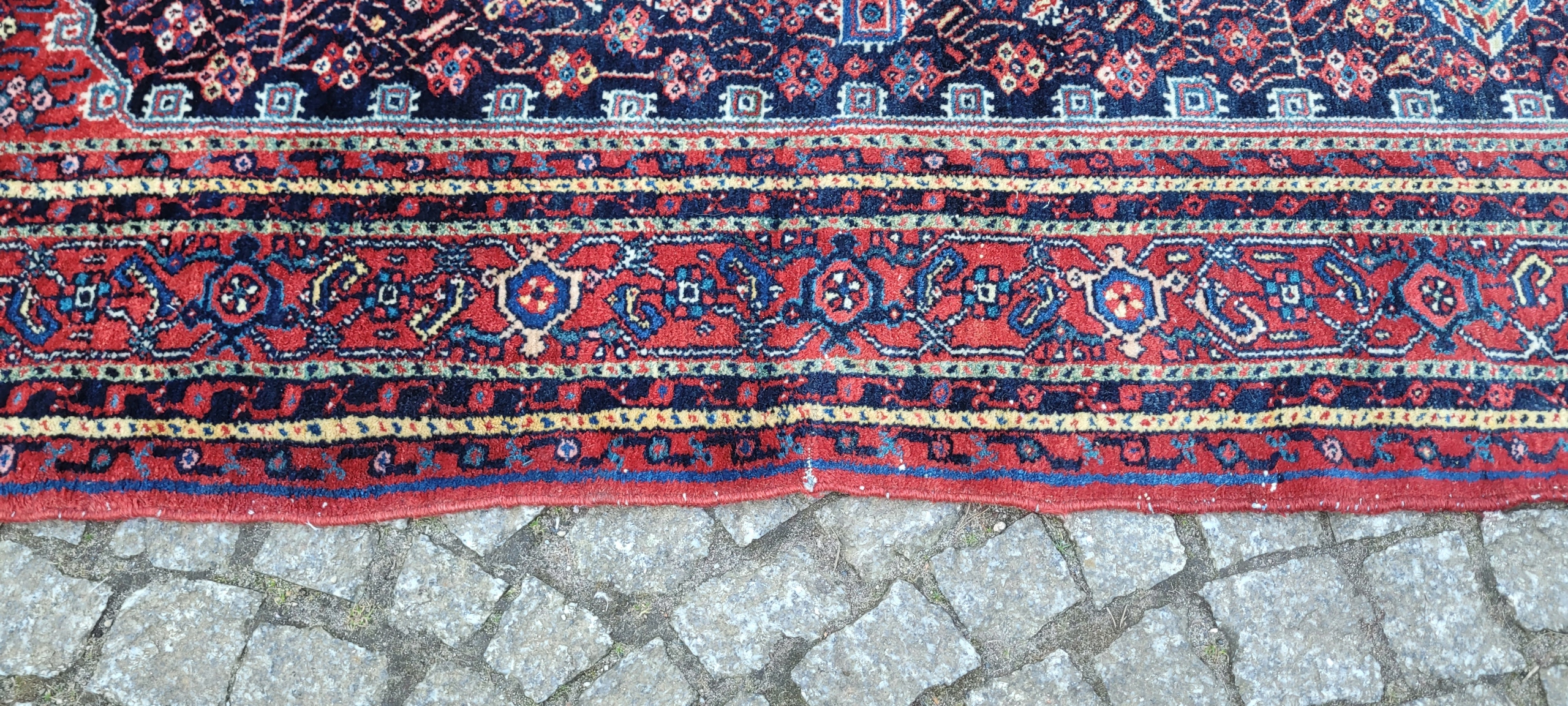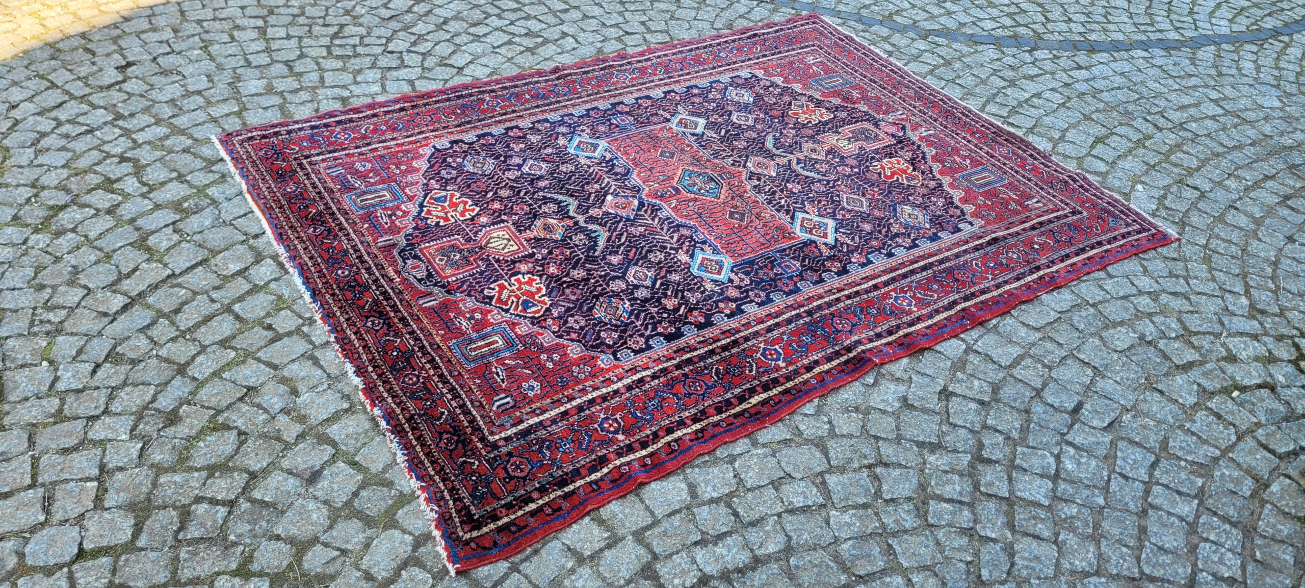 Це дуже високий килим -клас, сплетений у Курдистані. Це гірський регіон на південь від Азербайджану. З давніх часів ця територія була заселена кочівниками та наполовину -опитаними курдським походженням, які живуть на західному кордоні Персії та мають справу з селекцією та виробництвом найкращої вовни в країні. Це місце - це дуже активний центр плетіння автомобіля. Є чудові килими з геометричними візерунками, ромбрами, медальйоном, меншими прикрасами та відомими герраті, Мінами-Хані. Основні кольори килима зазвичай темно -сині або темно -червоні.