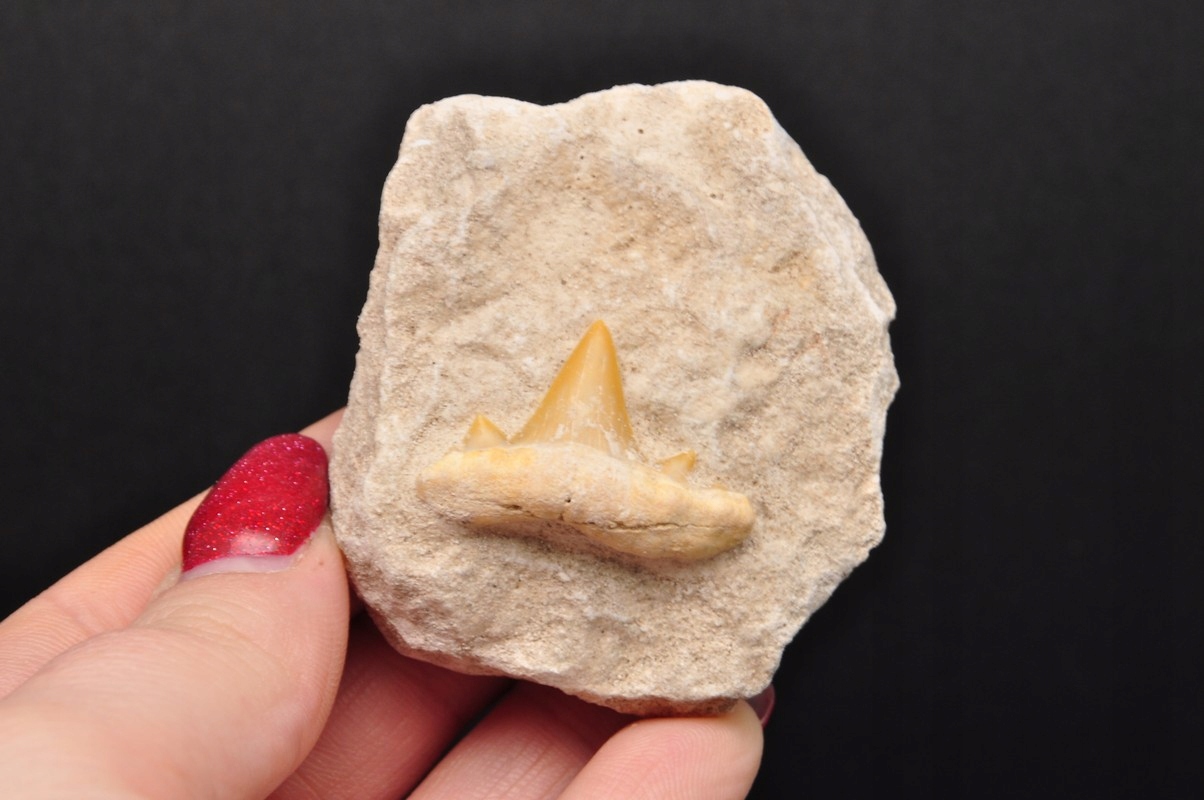 Натуральний, скам'янілий зуб акули у материнській скелі. Дуже добре збережена, чудова якість, ідеально підходить для колекції.