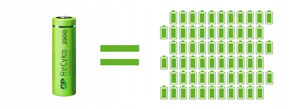 Вони екологічно чисті не тільки через можливість багаторазового використання, а й завдяки виробництву. Батарея сертифікована ECV і виготовлена з більш ніж 10% перероблених матеріалів. Проте весь комплект батарей 94% підлягає переробці. Ці характеристики означають, що немає більш екологічного вибору батарей, ніж GP ReCyko.