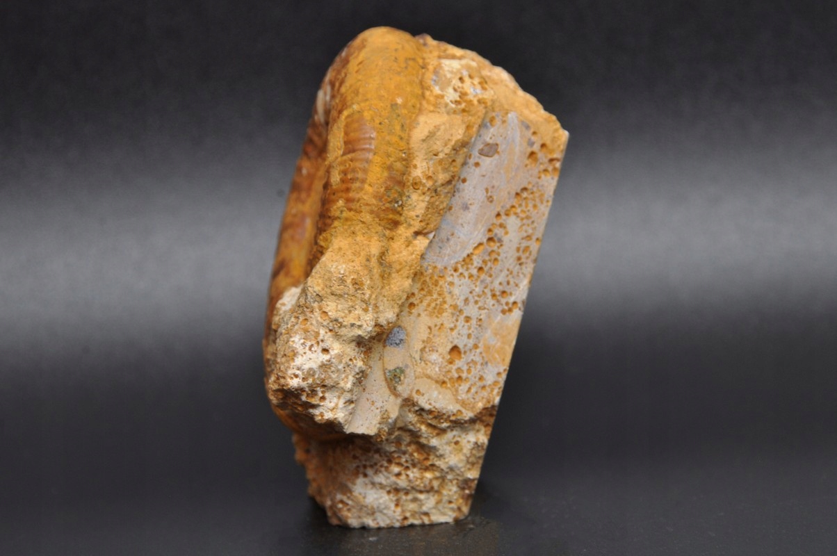 Амоніти, амоніти (Ammonoidea) - підклас вимерлих головоногих молюсків (Cephalopoda), зазвичай із симетричною, плоскоспіральною раковиною. Деякі типи мали незвичайні форми, наприклад, пряма оболонка, вертикально закручена спіраль або спіраль з неконтактними витками. Вони зустрічаються в гірських породах морського походження, що датуються девонським періодом до кінця крейдяного періоду. Деякі окремі камери відкриті та заповнені багатим асортиментом сіро-бежевих і коричневих кристалів кальциту з перегородками між камерами