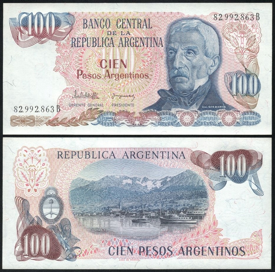 $ Argentina 100 Pesos Argentinos P-315 UNC