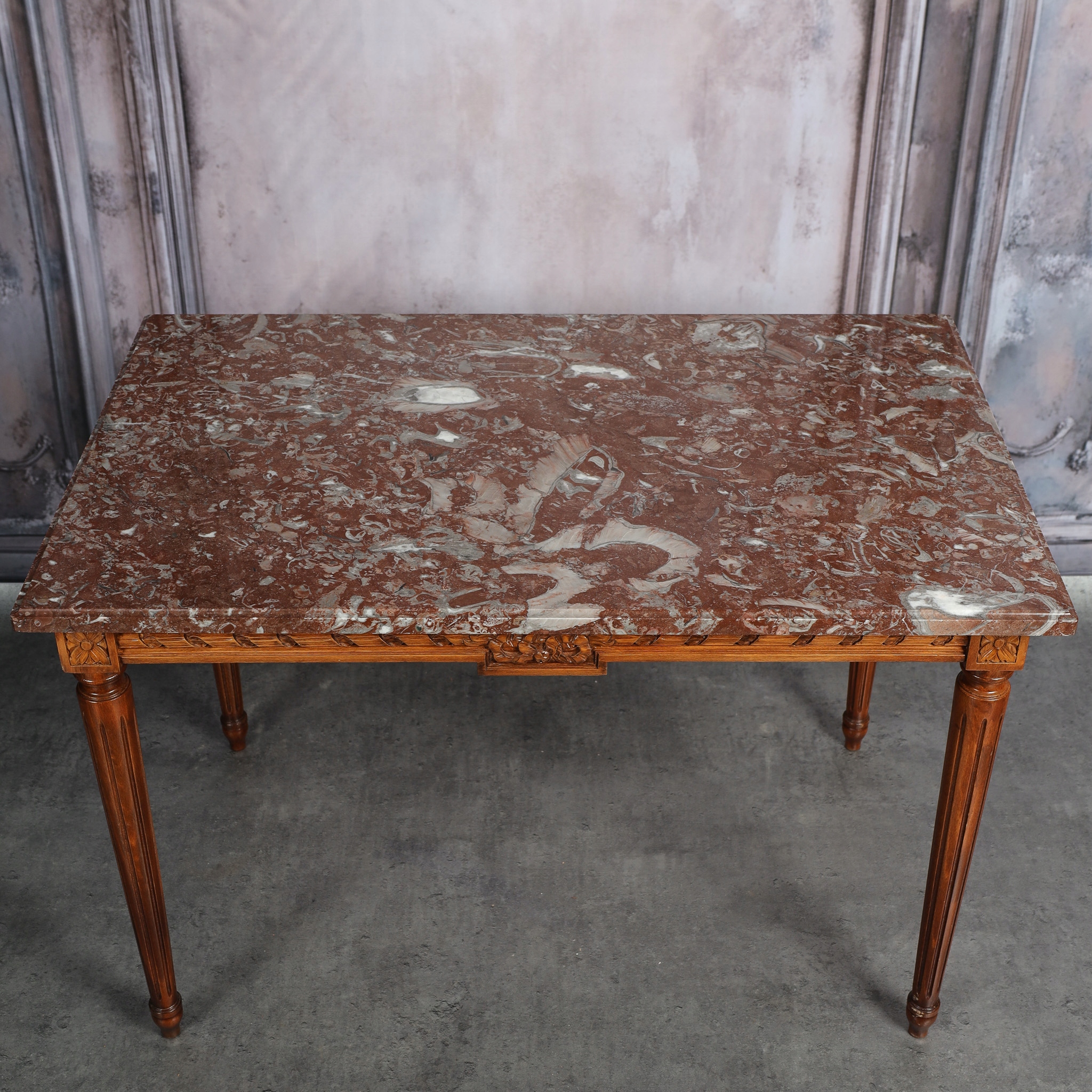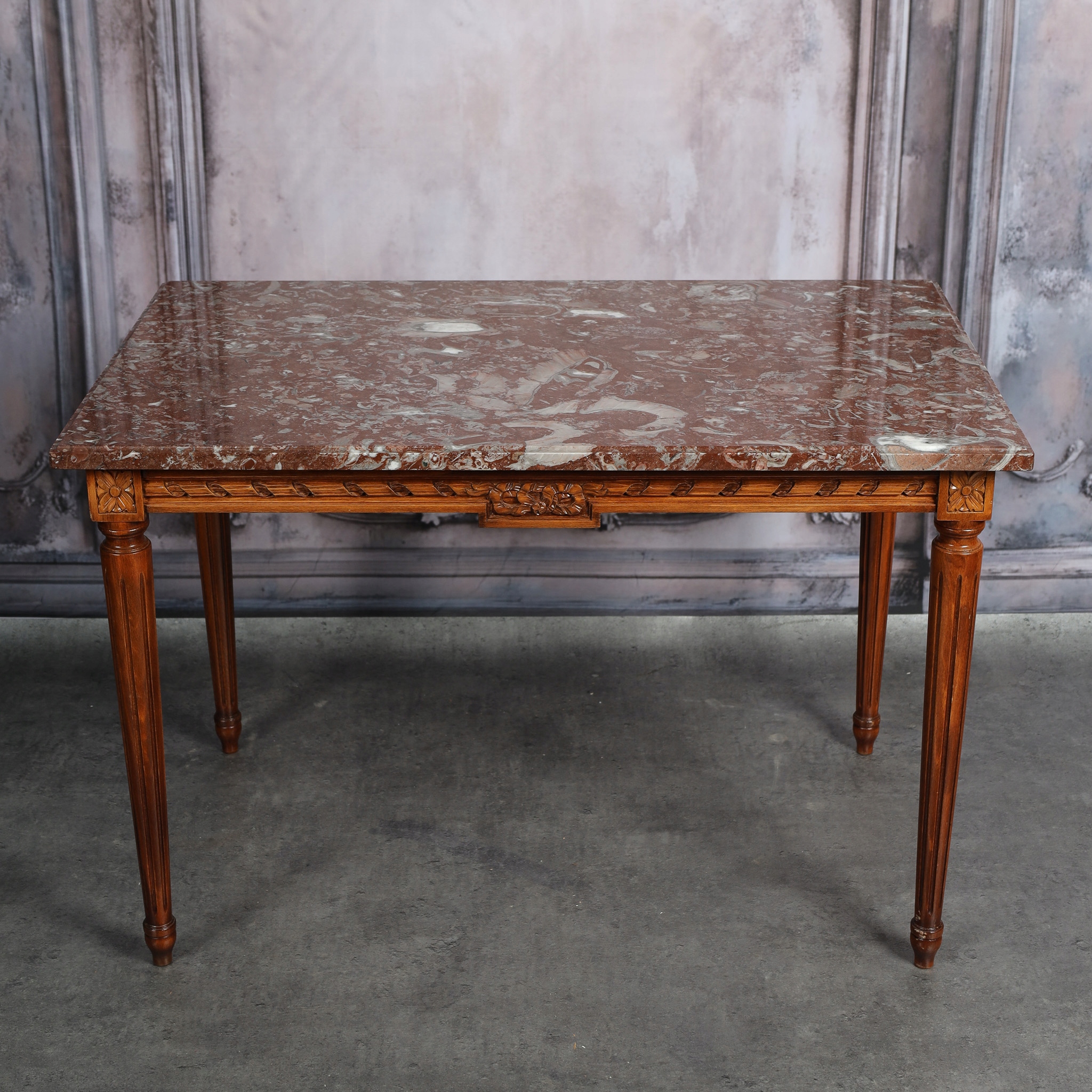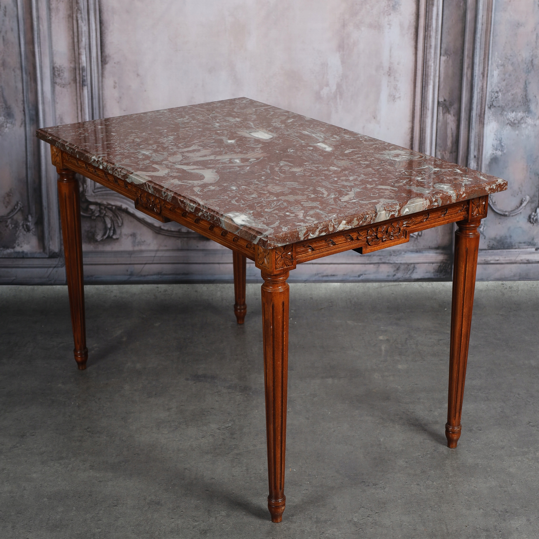 Стіл у стилі Людовика XVI із стільницею з червоного мармуру.