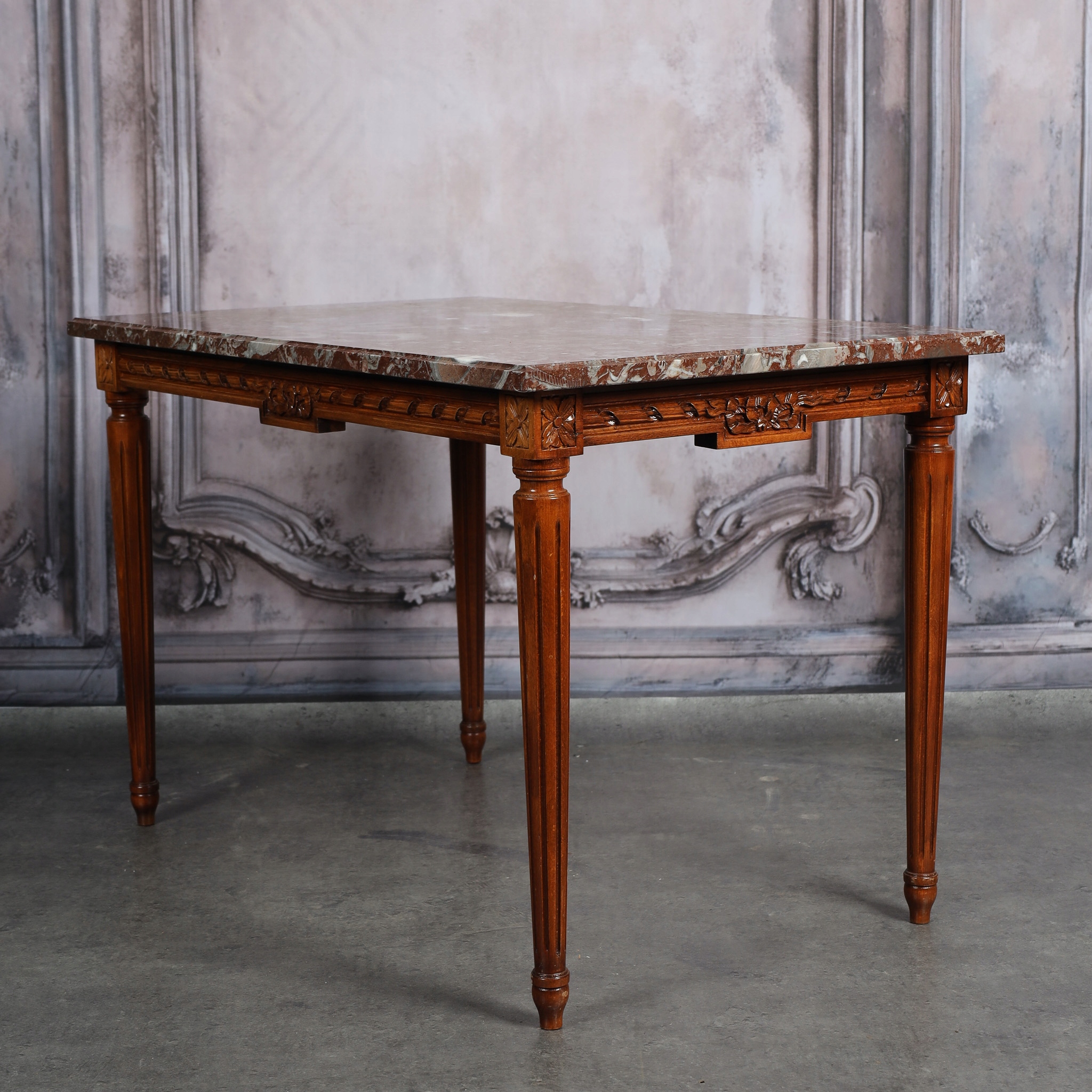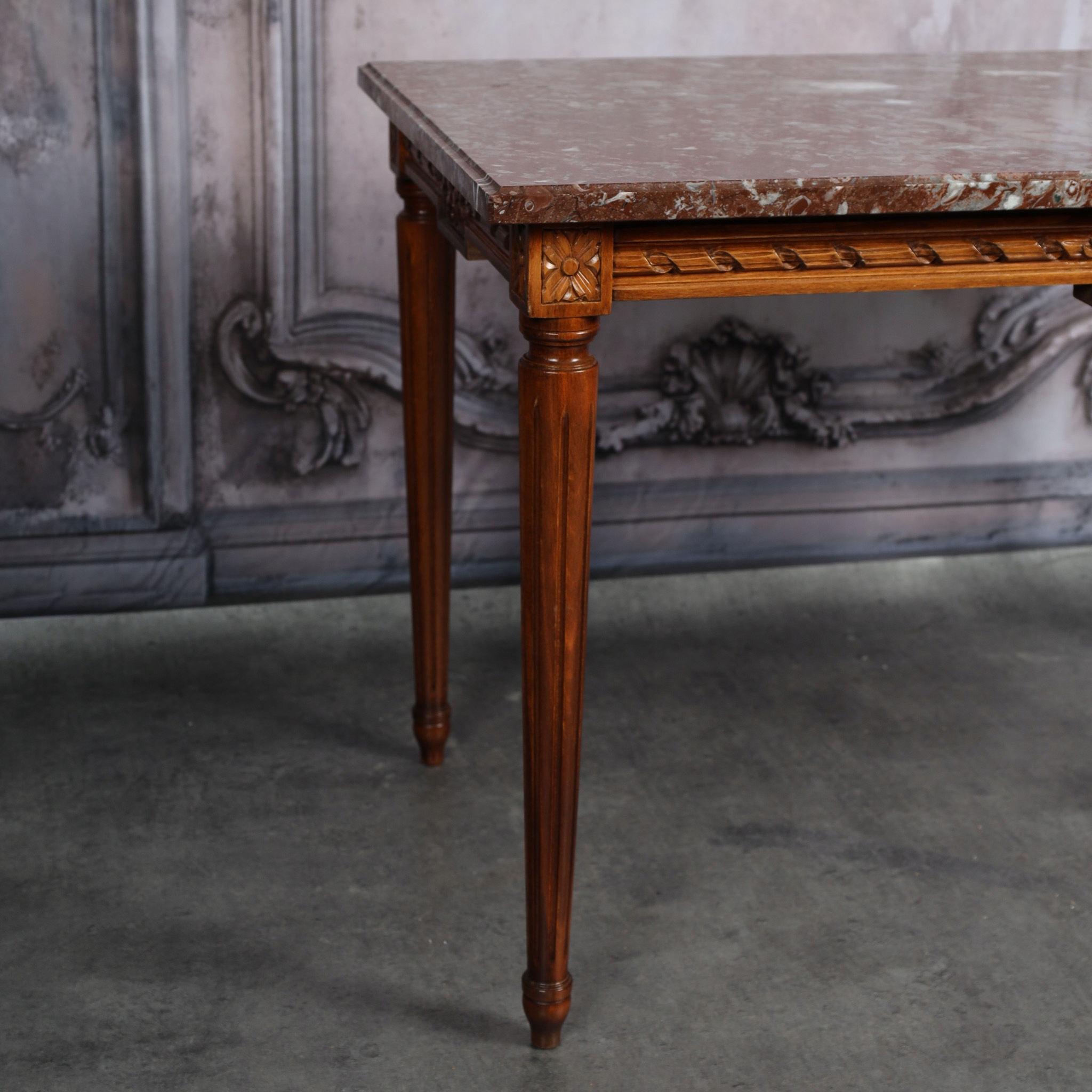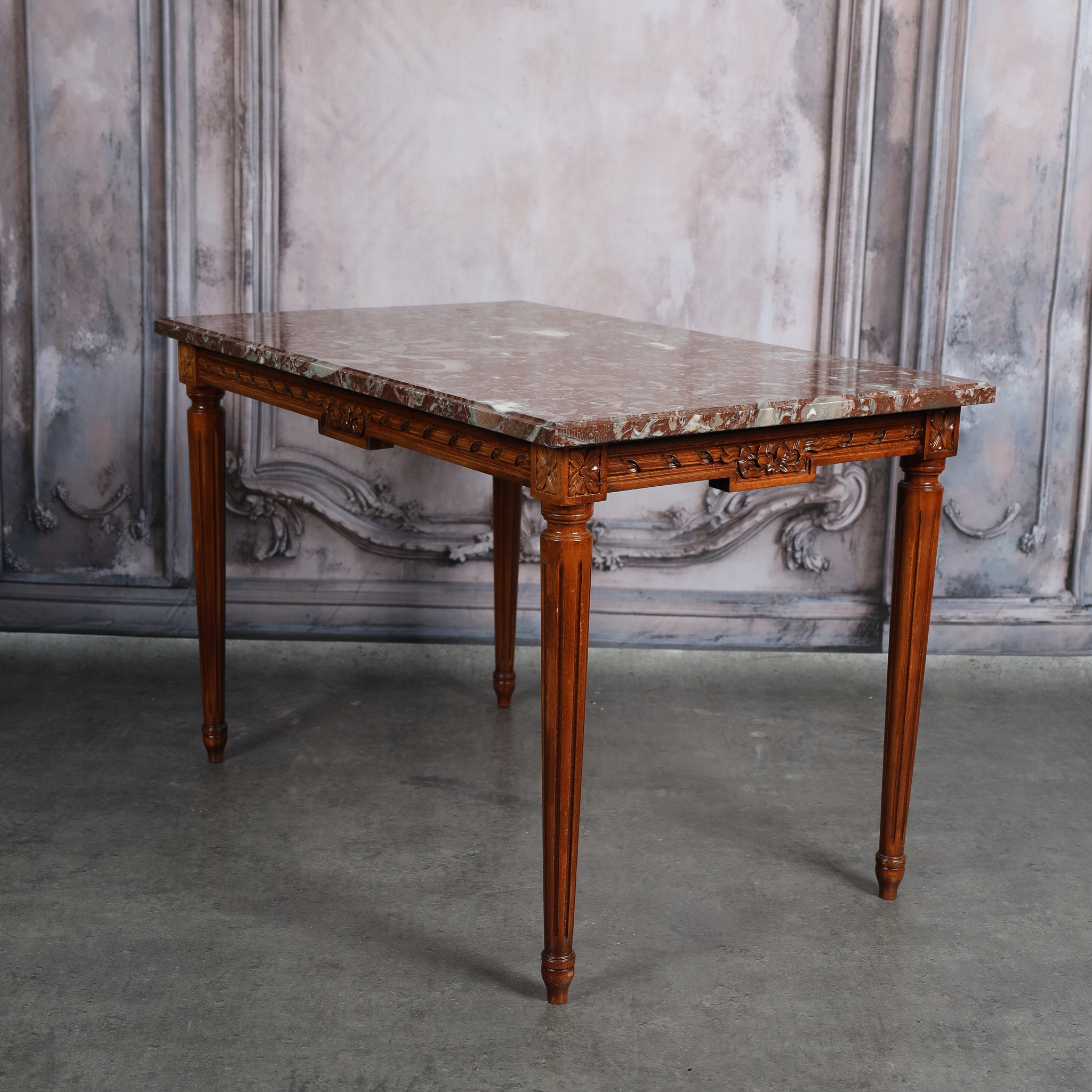 Стіл у стилі Людовика XVI із стільницею з червоного мармуру.